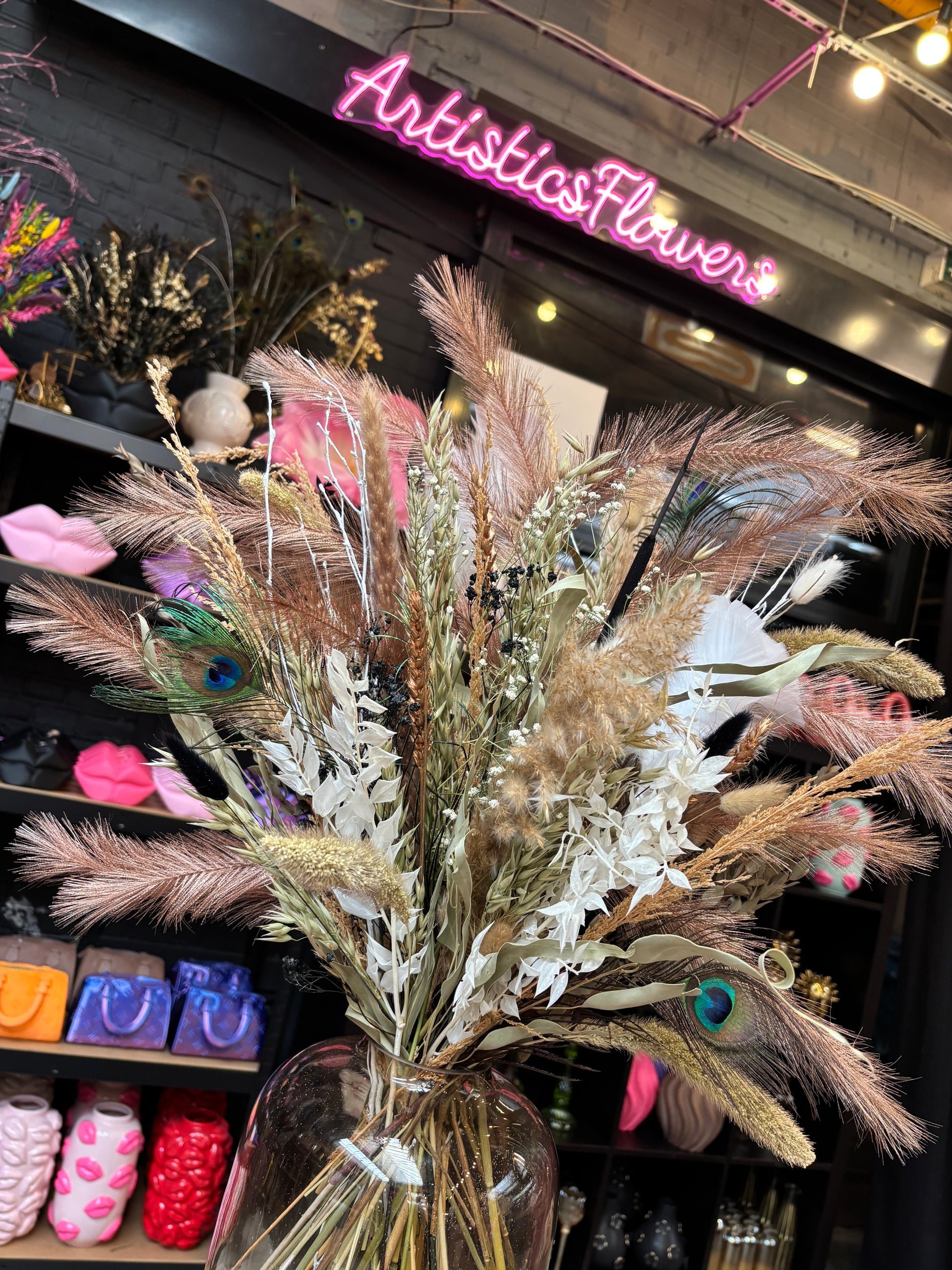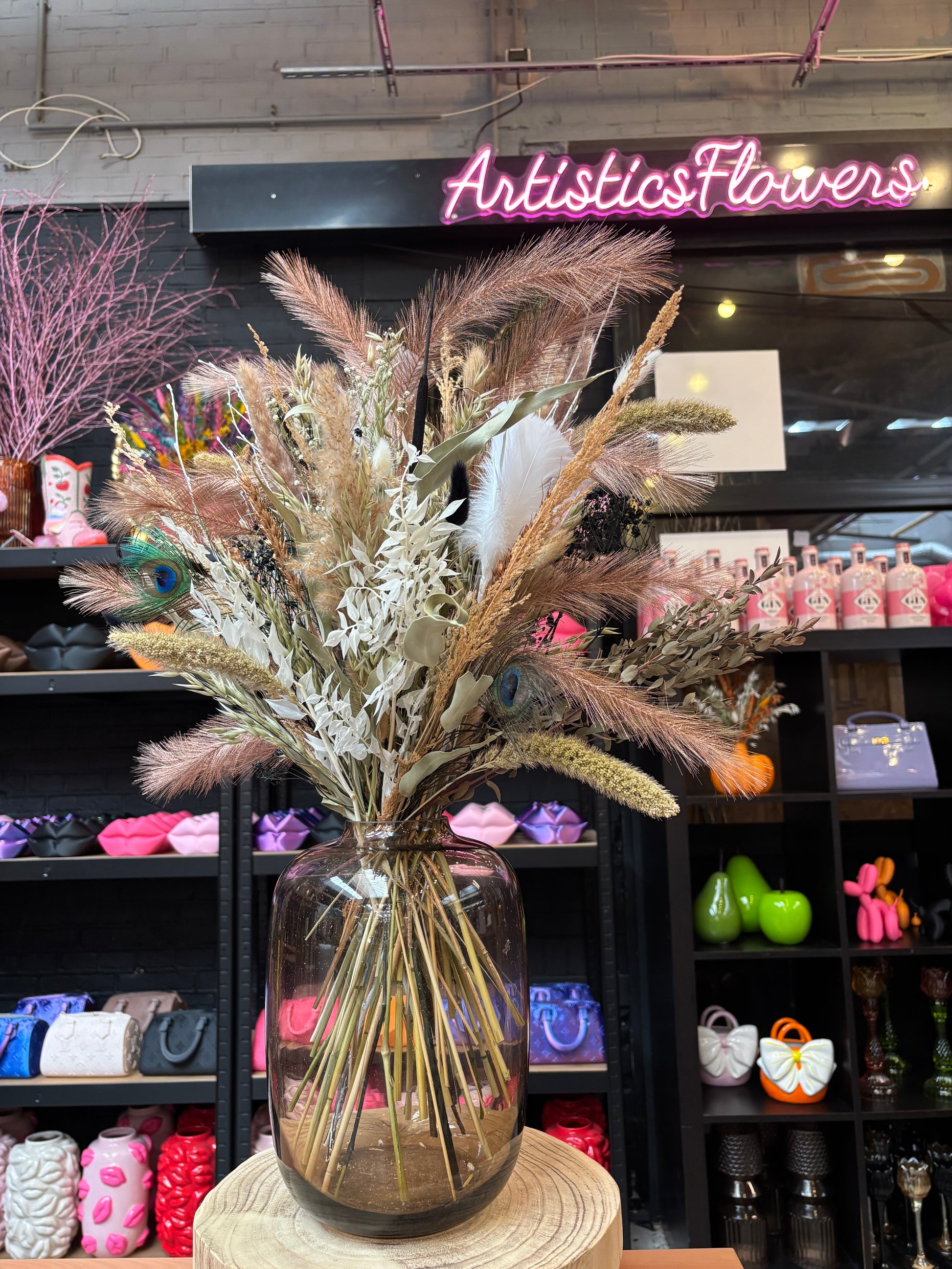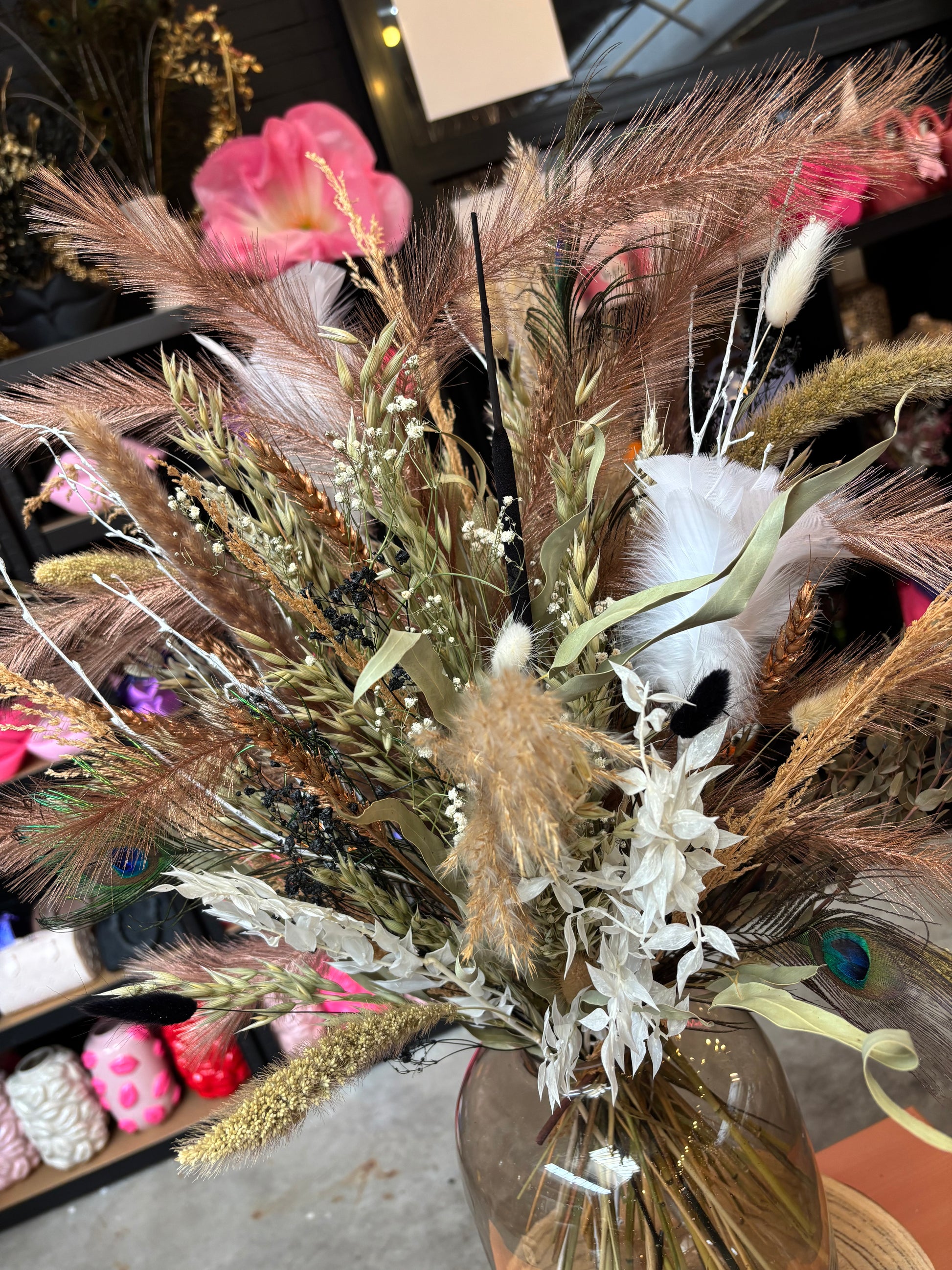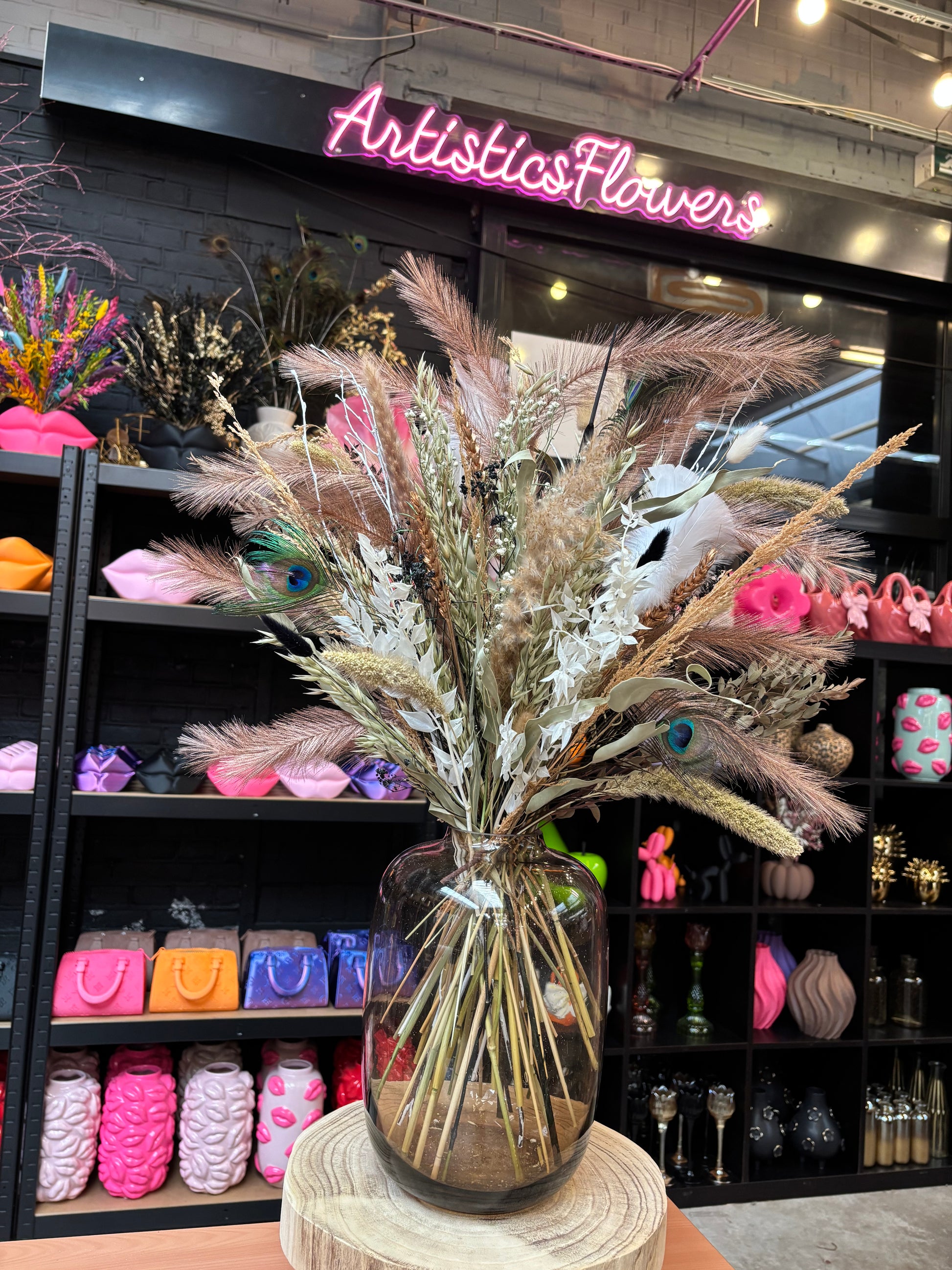 Het kan voorkomen dat een bepaald soort droogbloem niet meer voorradig is. Deze vervangen we dan voor een soortgelijke bloem, waardoor de uitstraling hetzelfde blijft.
