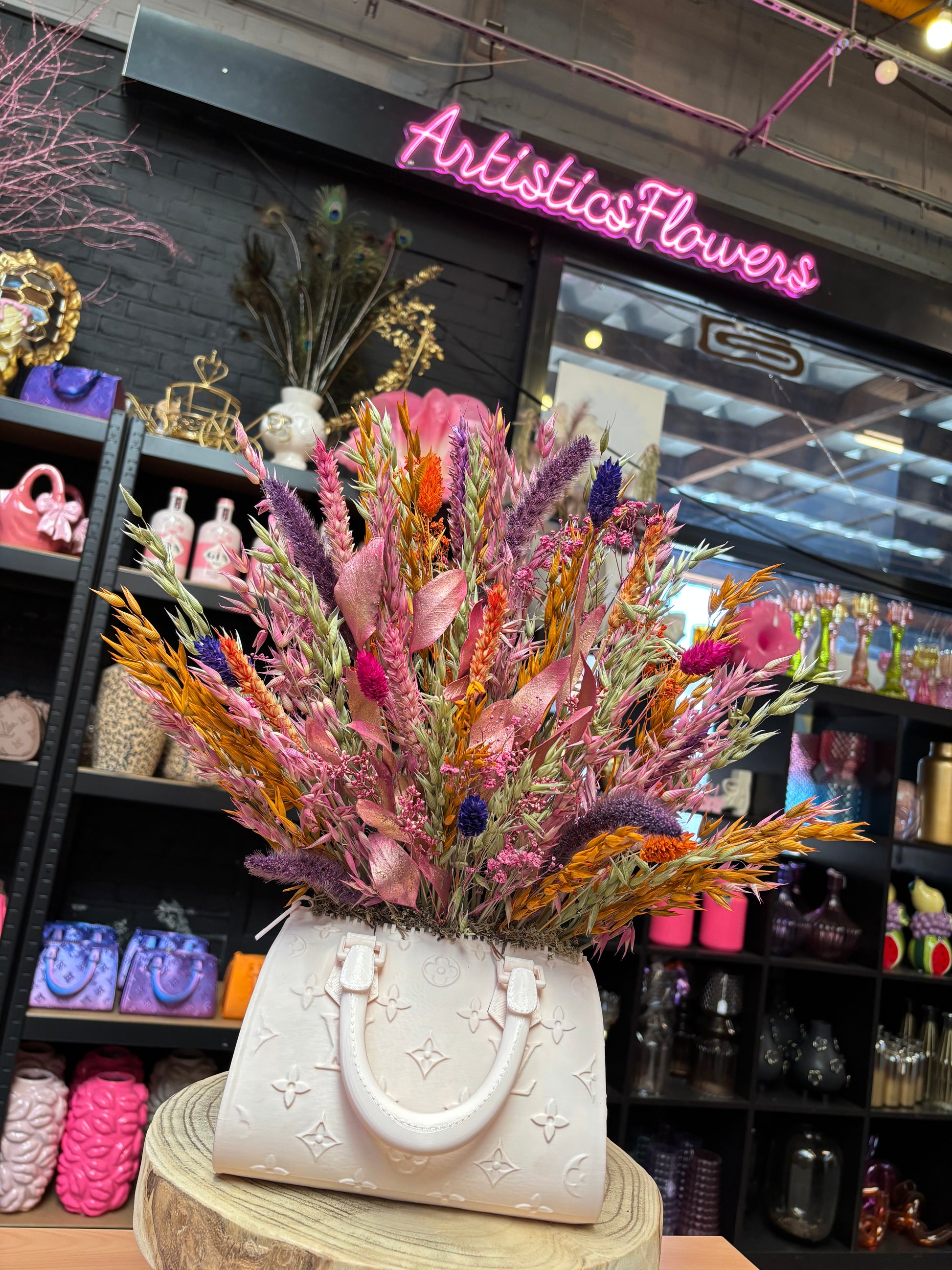 Pastel droogbloemen in een bag vaas omdat je bloemen ook stijl verdienen!🖤 De vaas is 3D geprint.