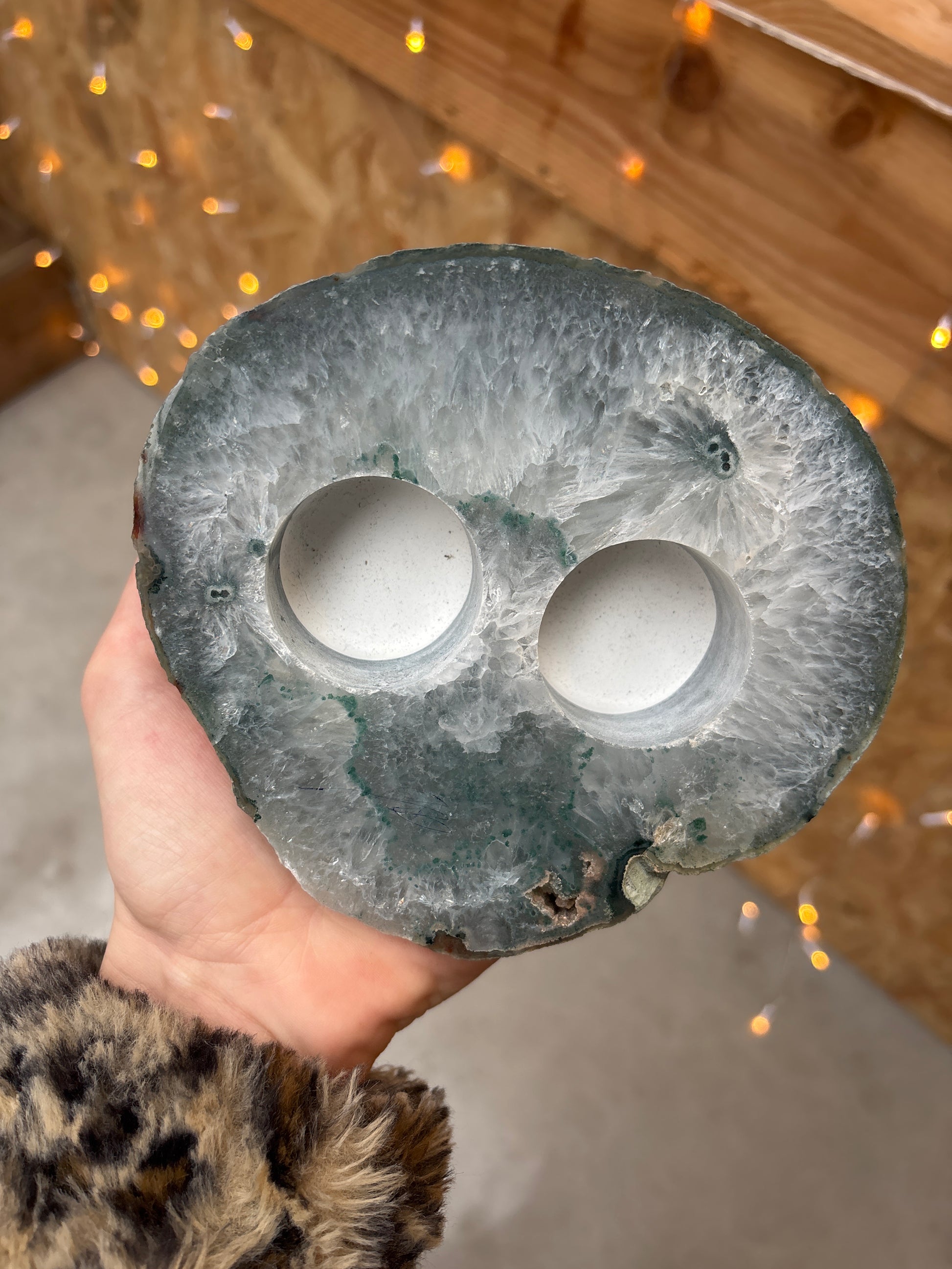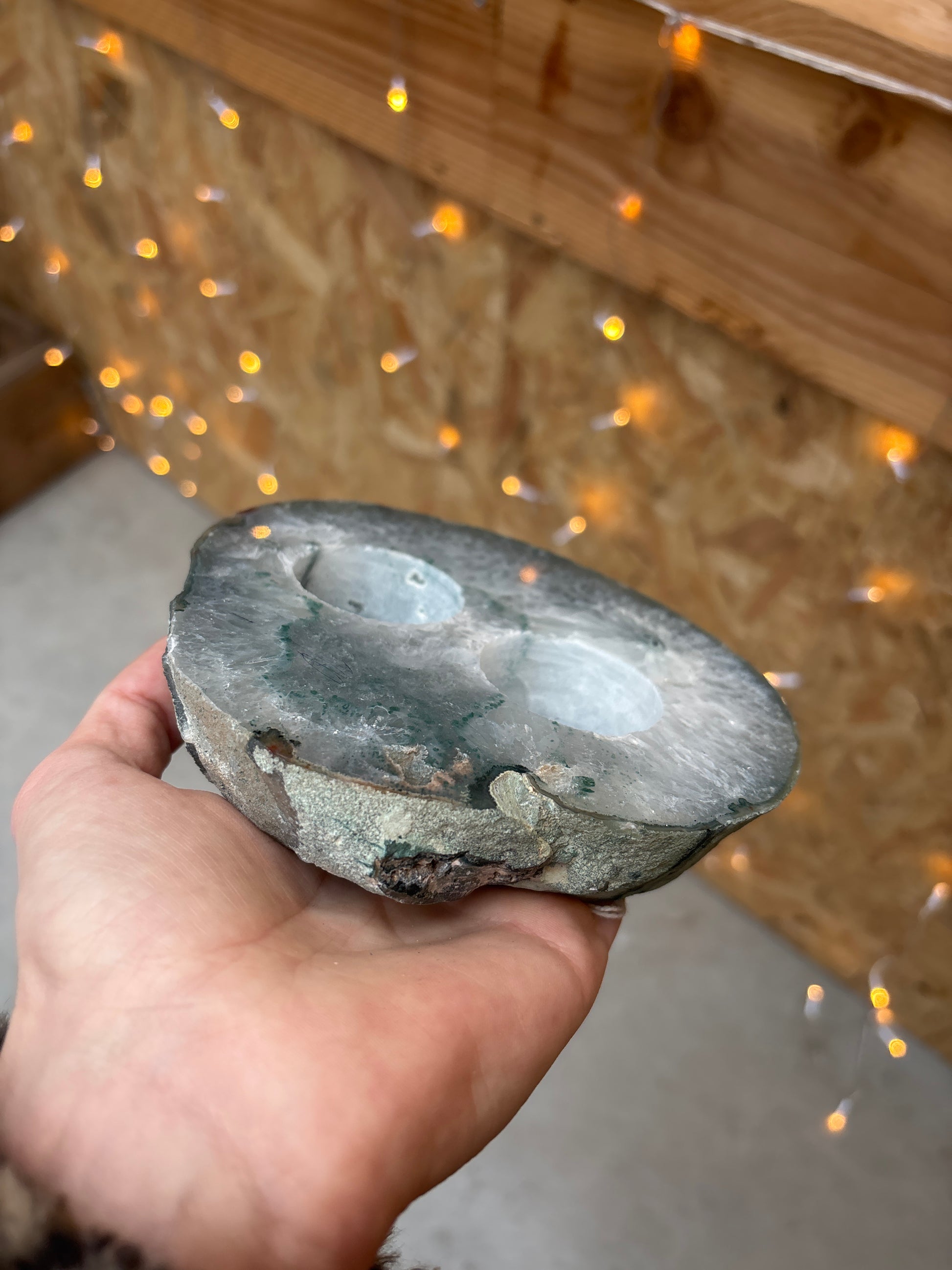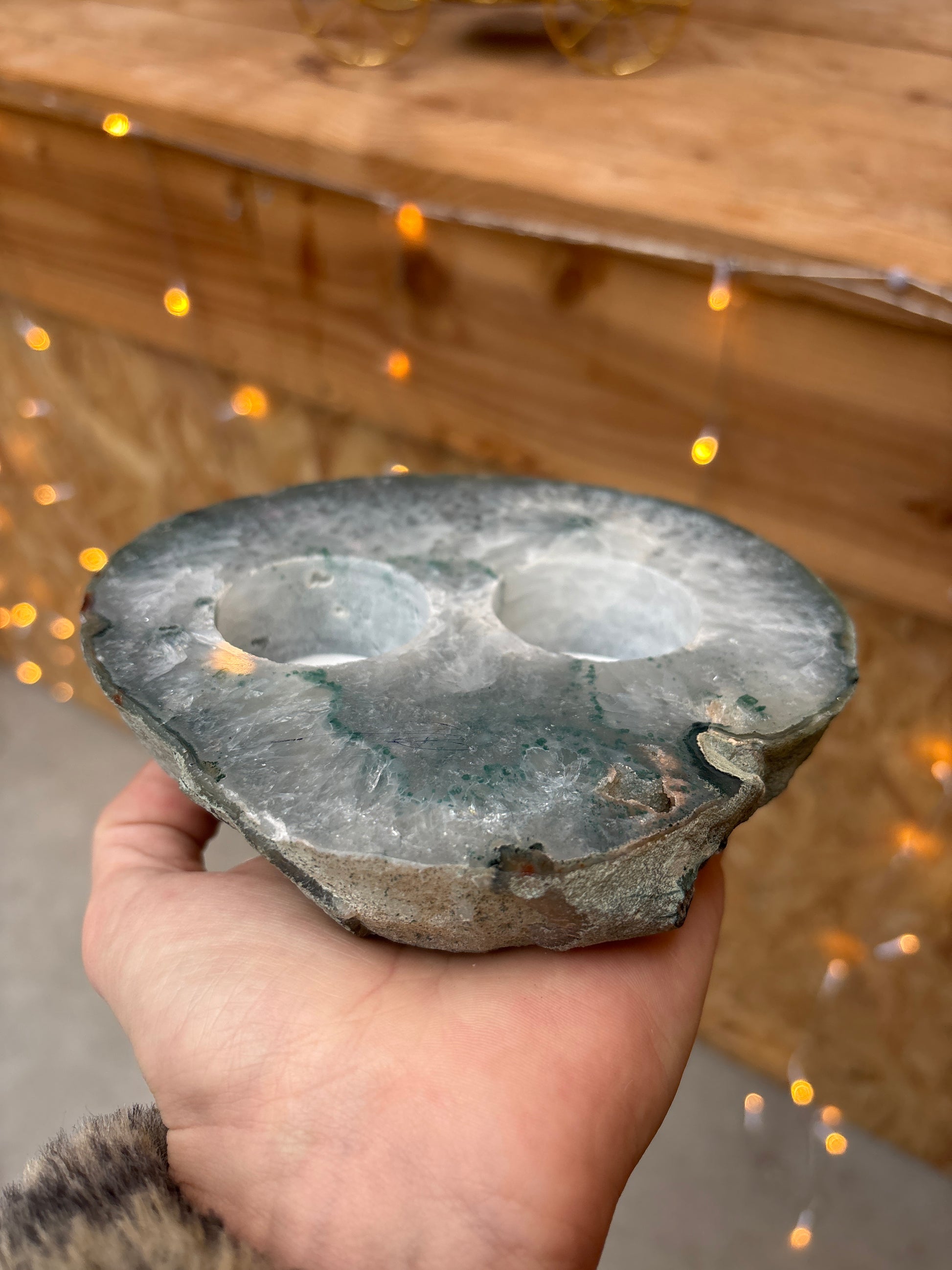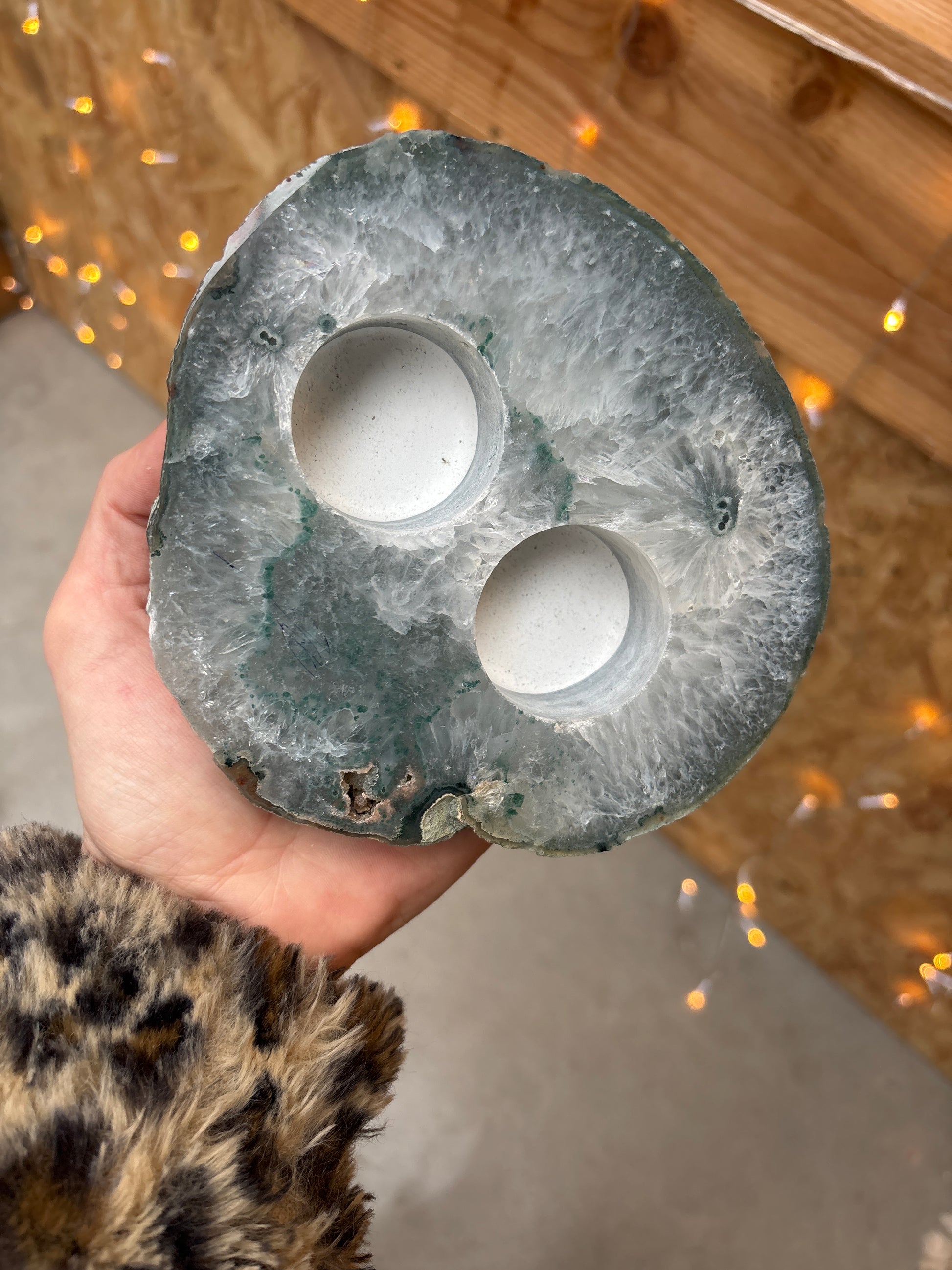 Prachtige agaat waxinelichthouder. Circa 14x15 cm.