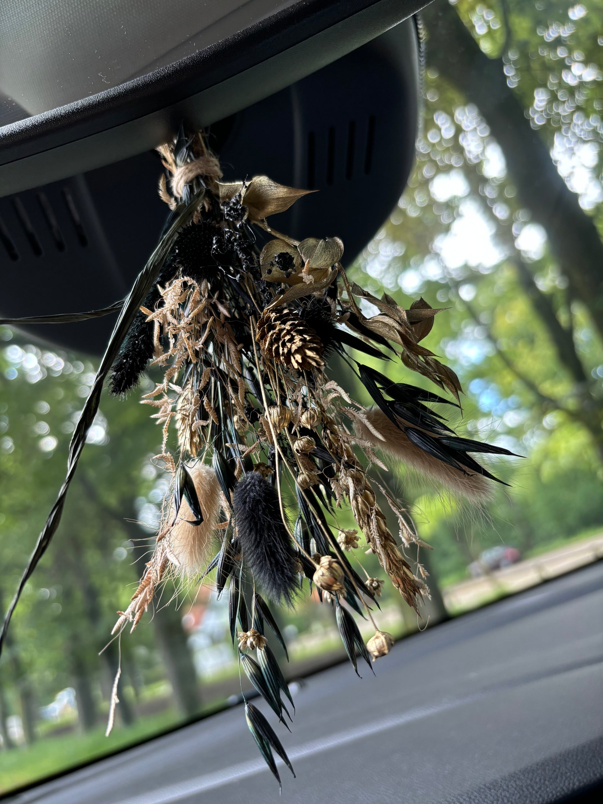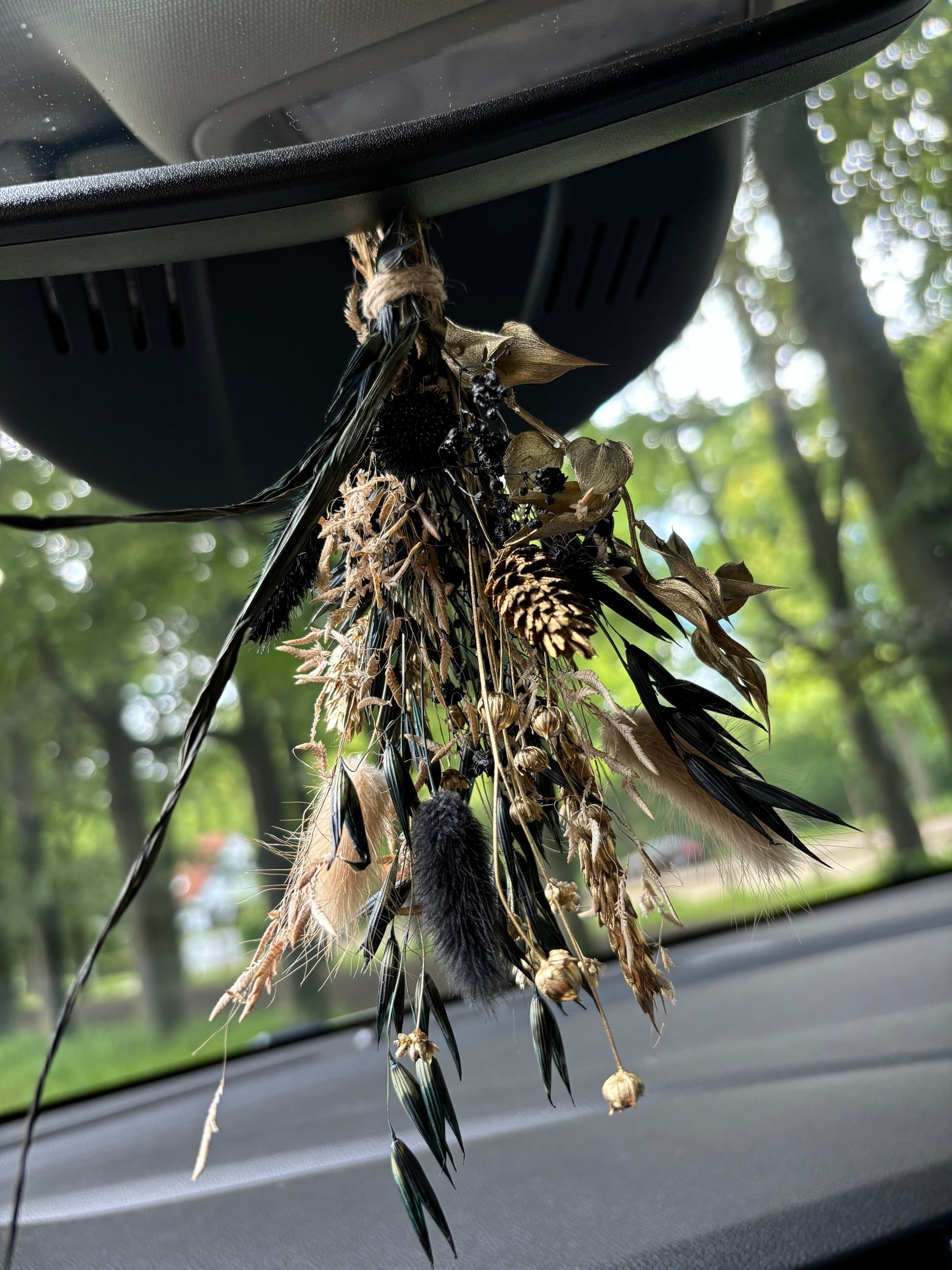 Fleur je auto op met deze schattige mini boeketjes voor aan je binnenspiegel! Geef je gewenste kleuren door tijdens het bestellen.