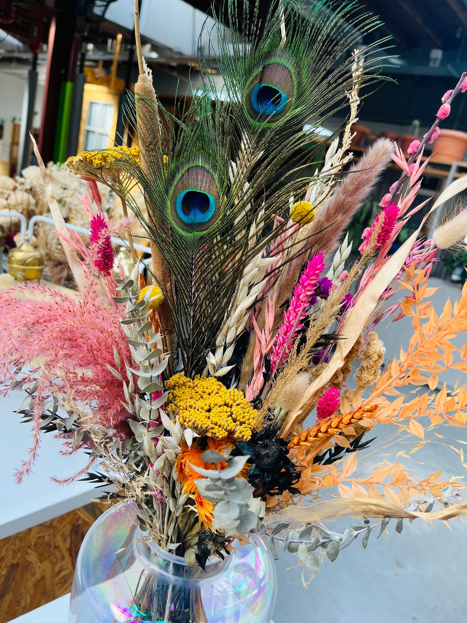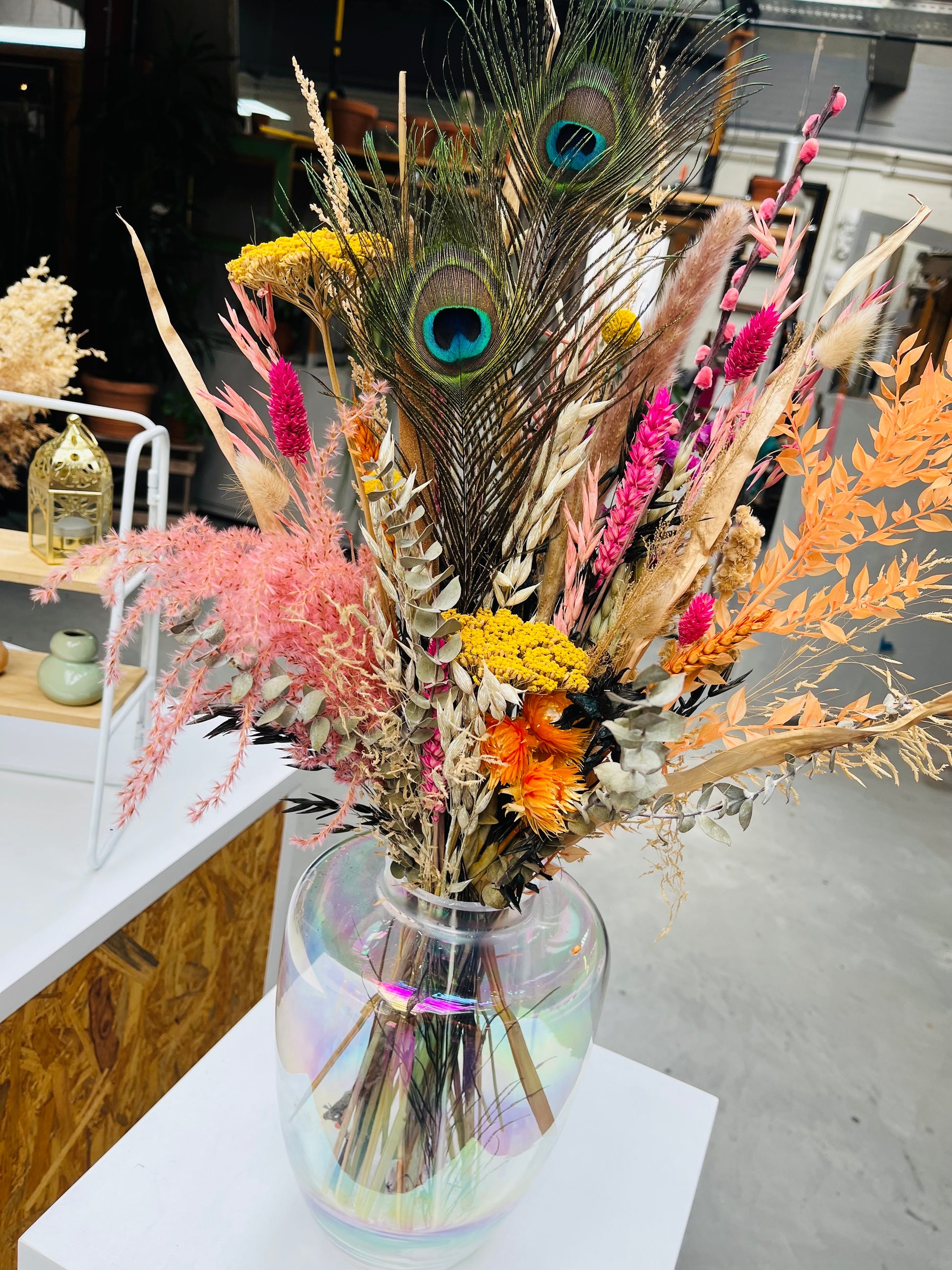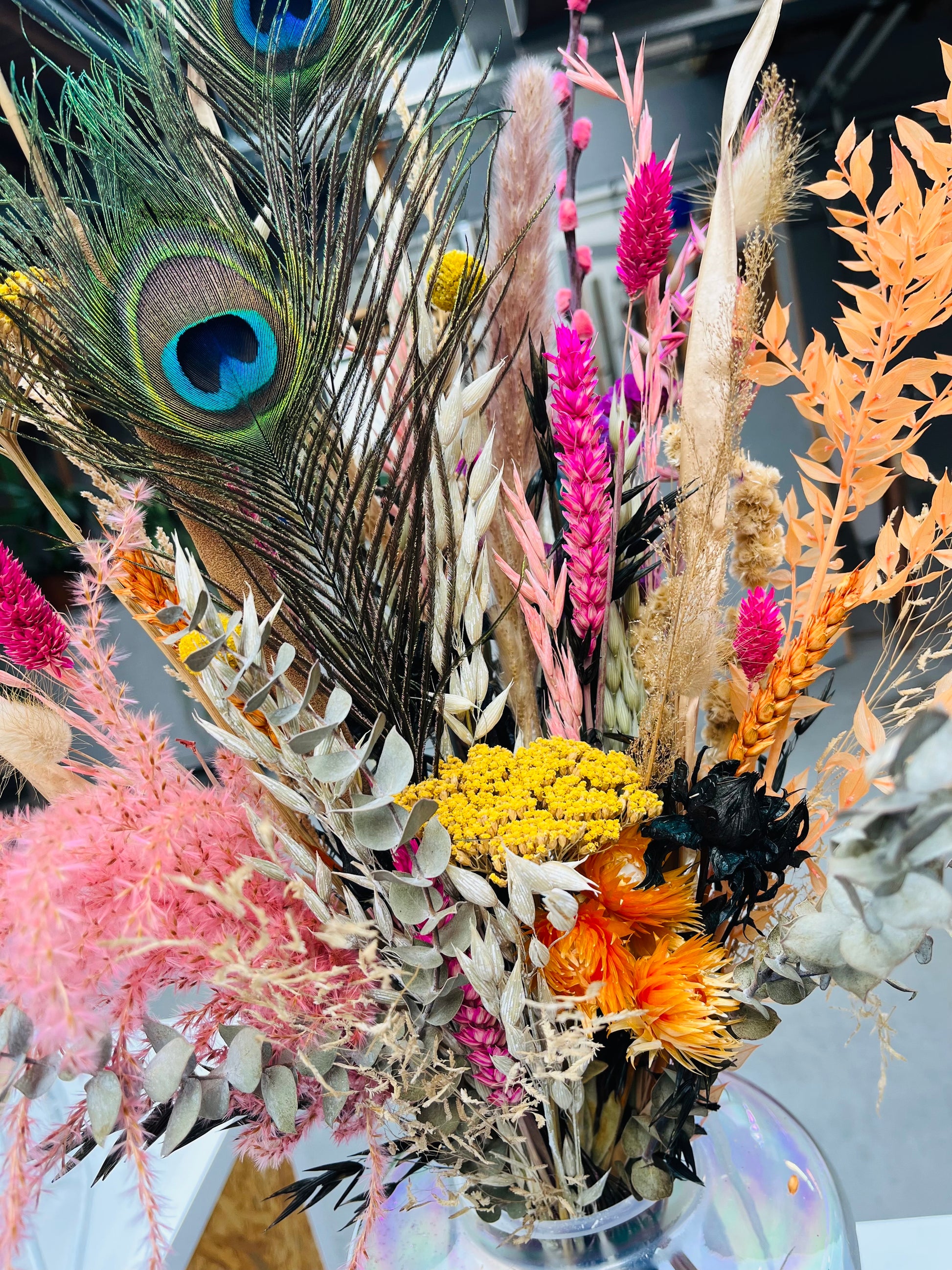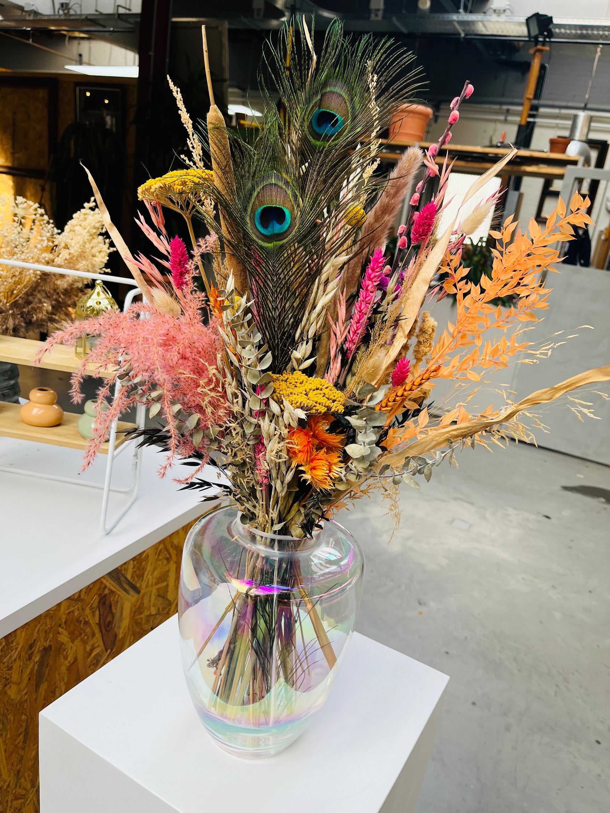Het kan voorkomen dat een bepaald soort droogbloem niet meer voorradig is. Deze vervangen we dan voor een soortgelijke bloem, waardoor de uitstraling hetzelfde blijft.