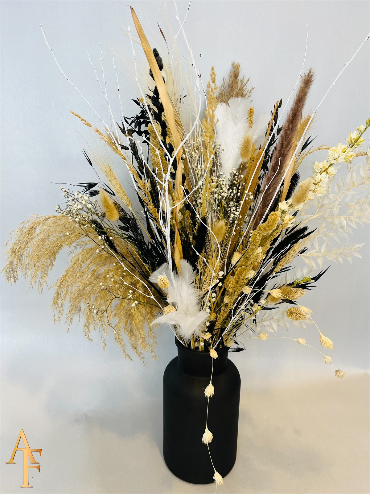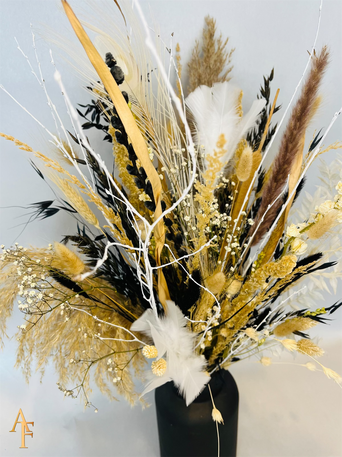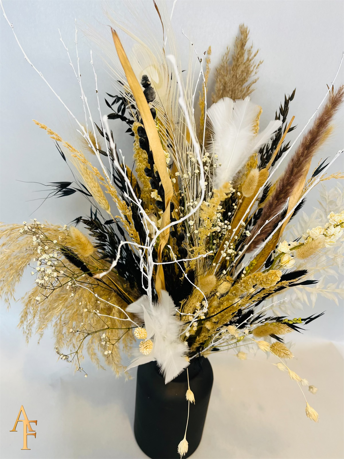 Het kan voorkomen dat een bepaald soort droogbloem niet meer voorradig is. Deze vervangen we dan voor een soortgelijke bloem, waardoor de uitstraling hetzelfde blijft.