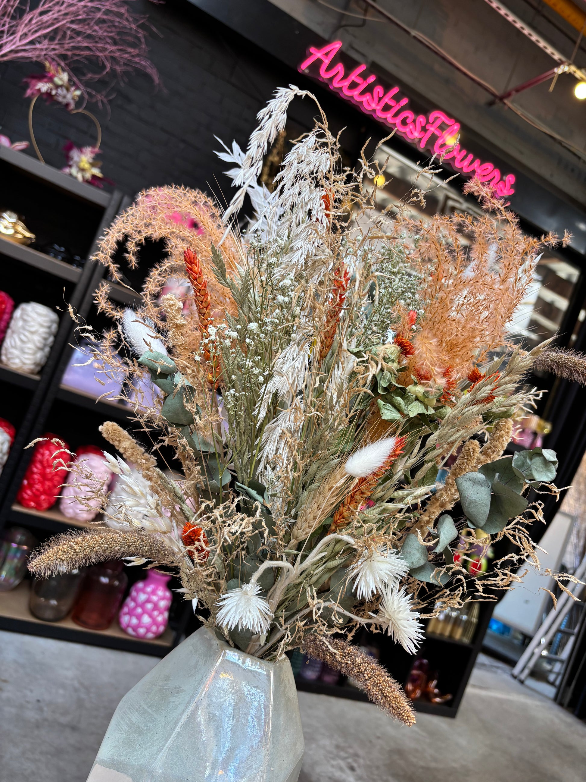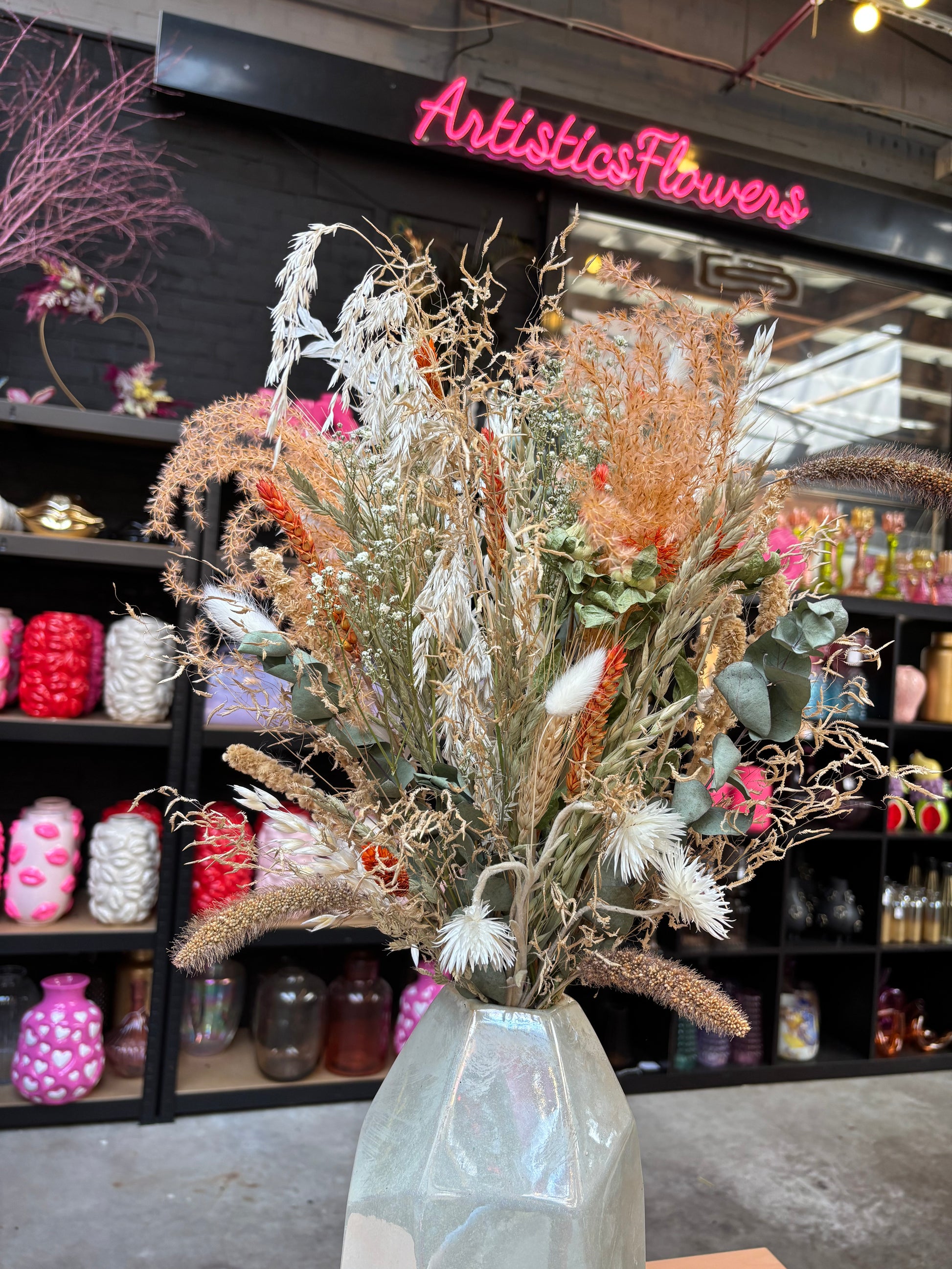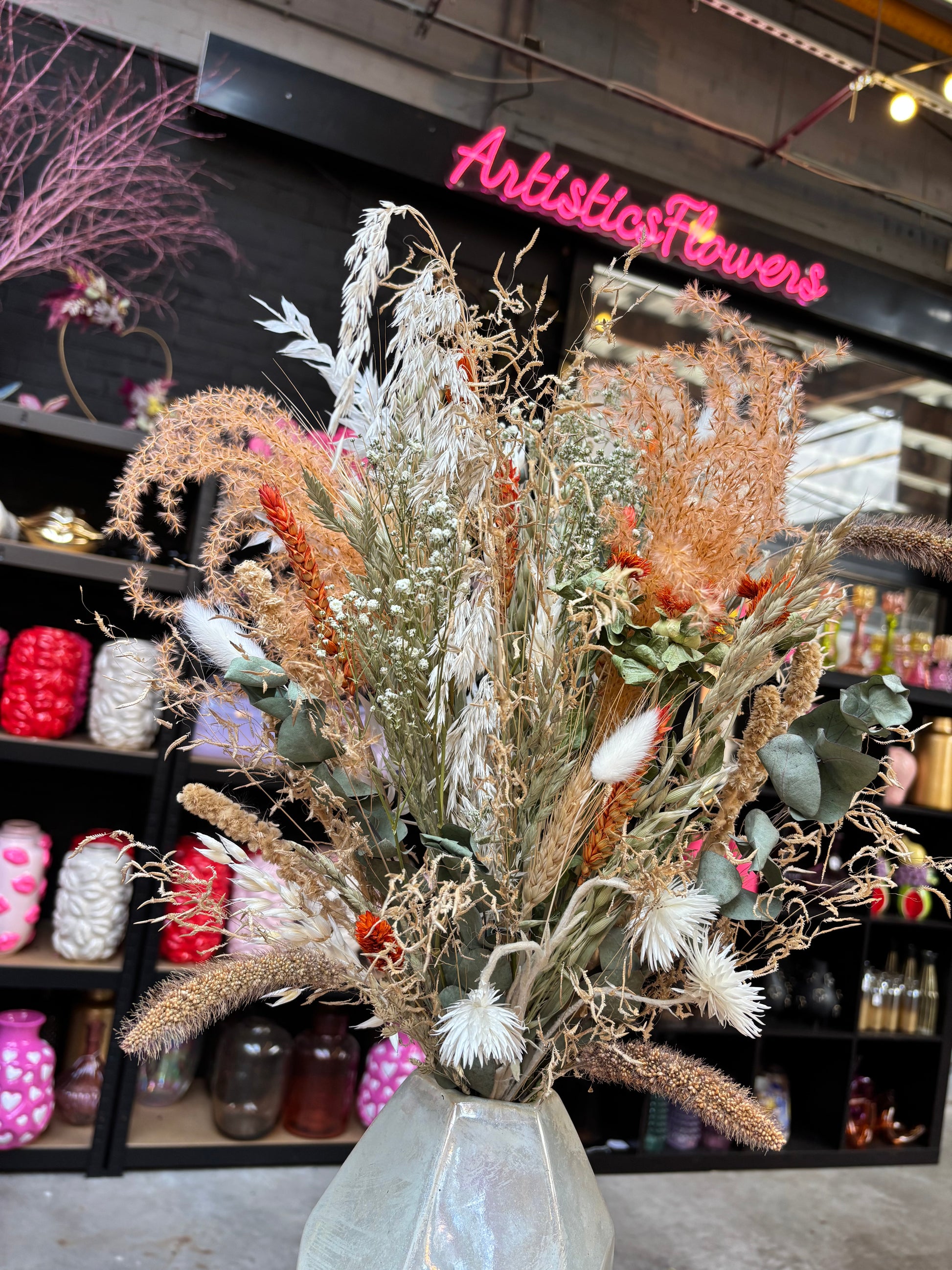 Het kan voorkomen dat een bepaald soort droogbloem niet meer voorradig is. Deze vervangen we dan voor een soortgelijke bloem, waardoor de uitstraling hetzelfde blijft.