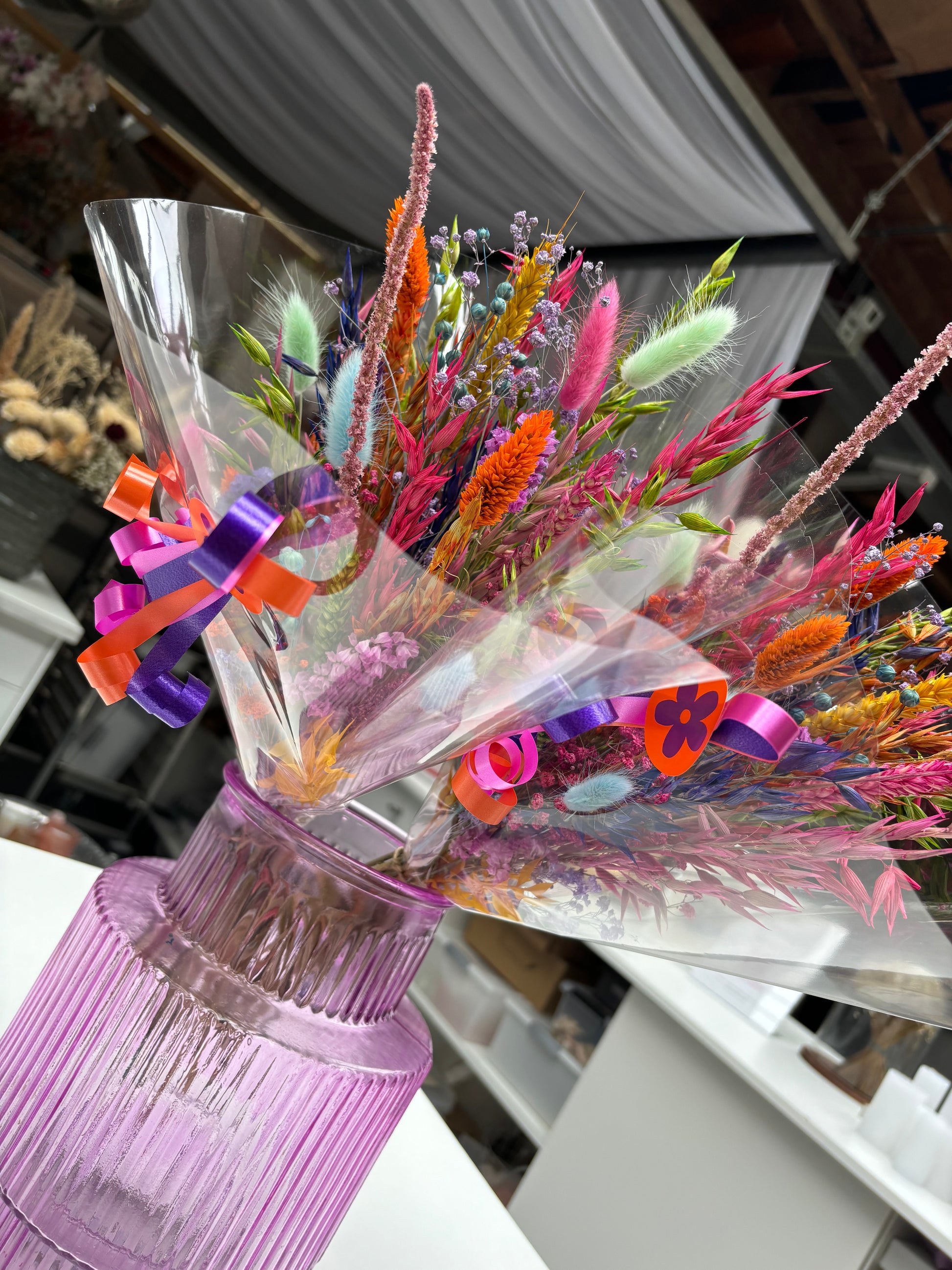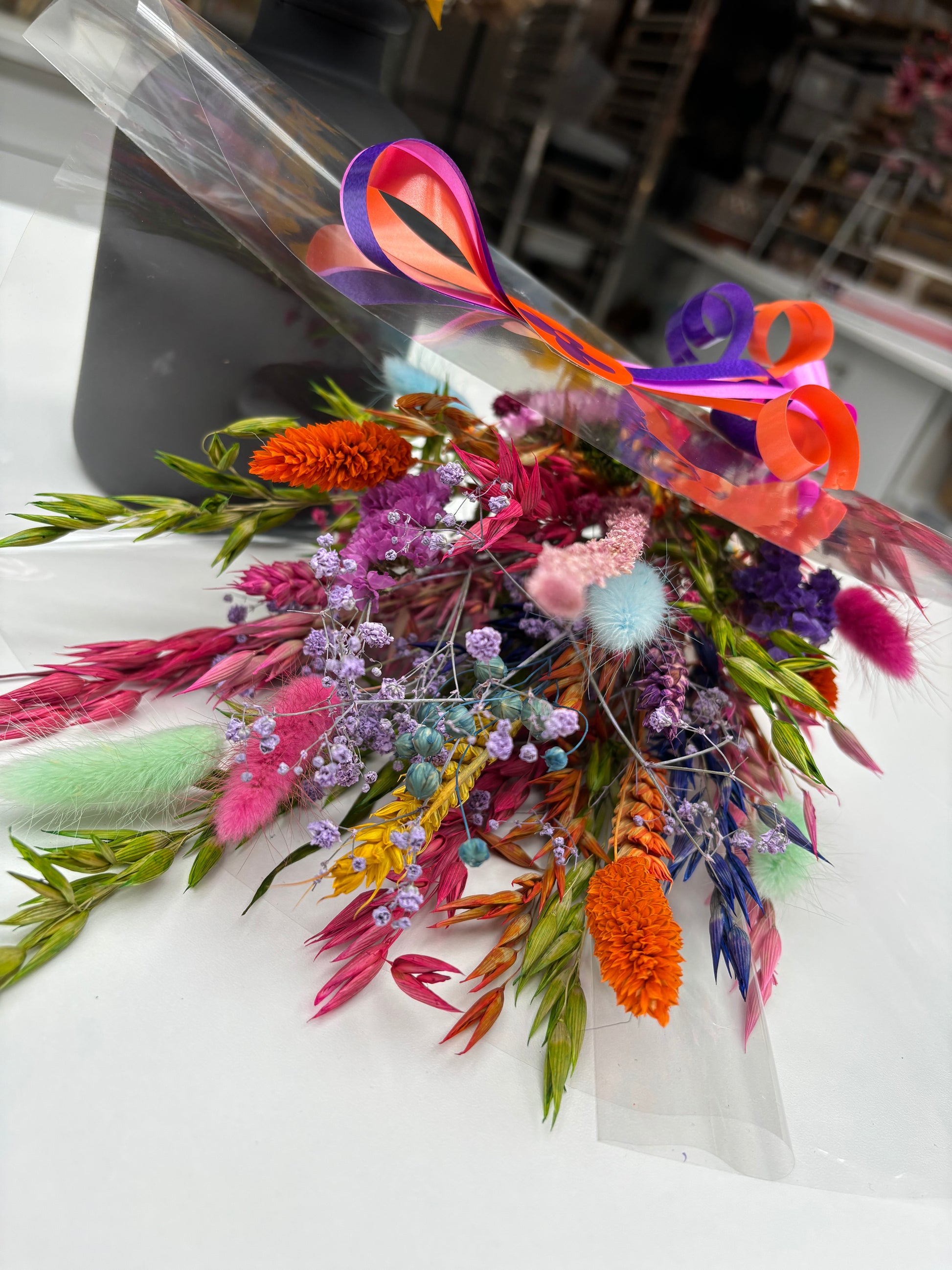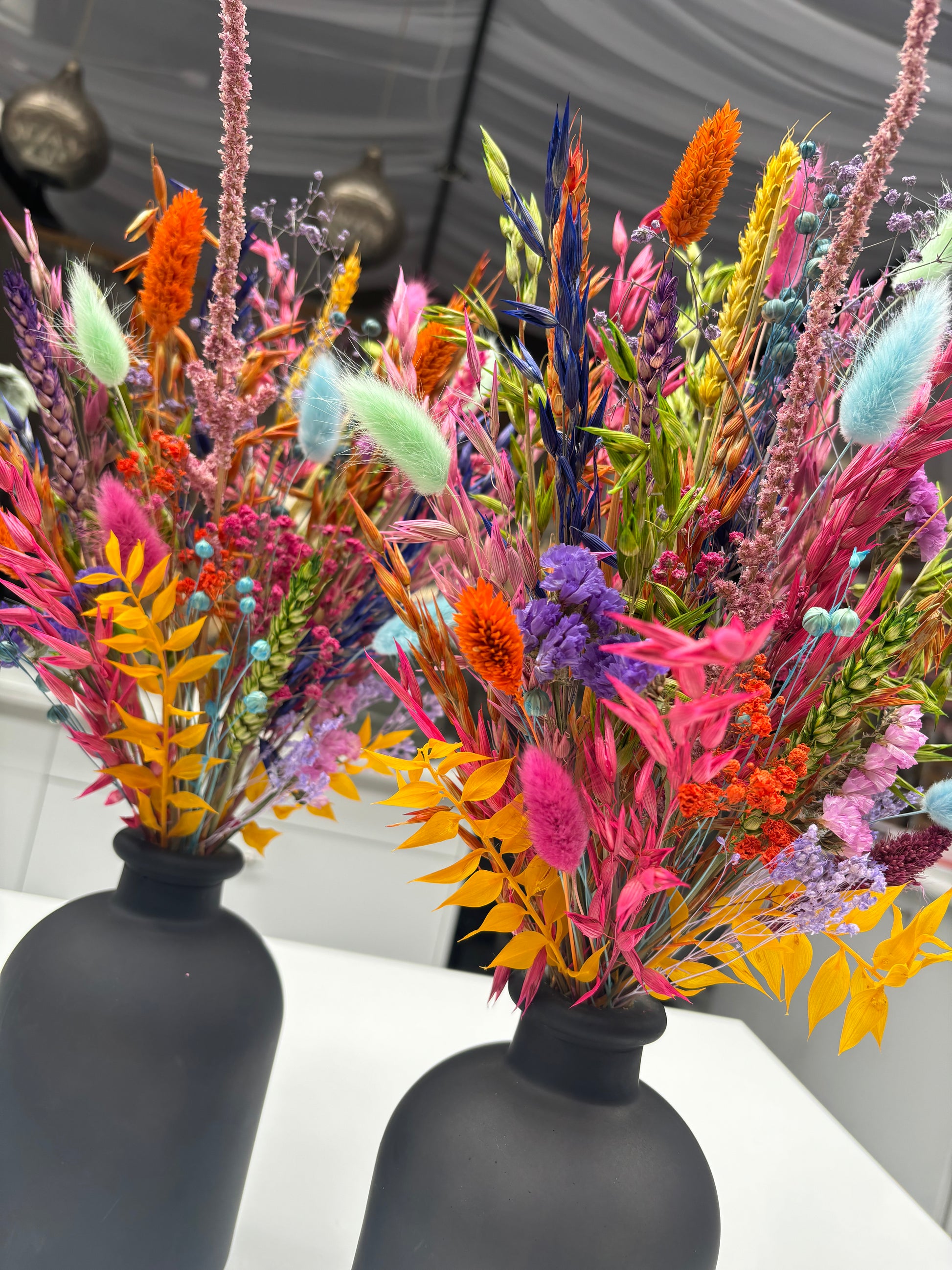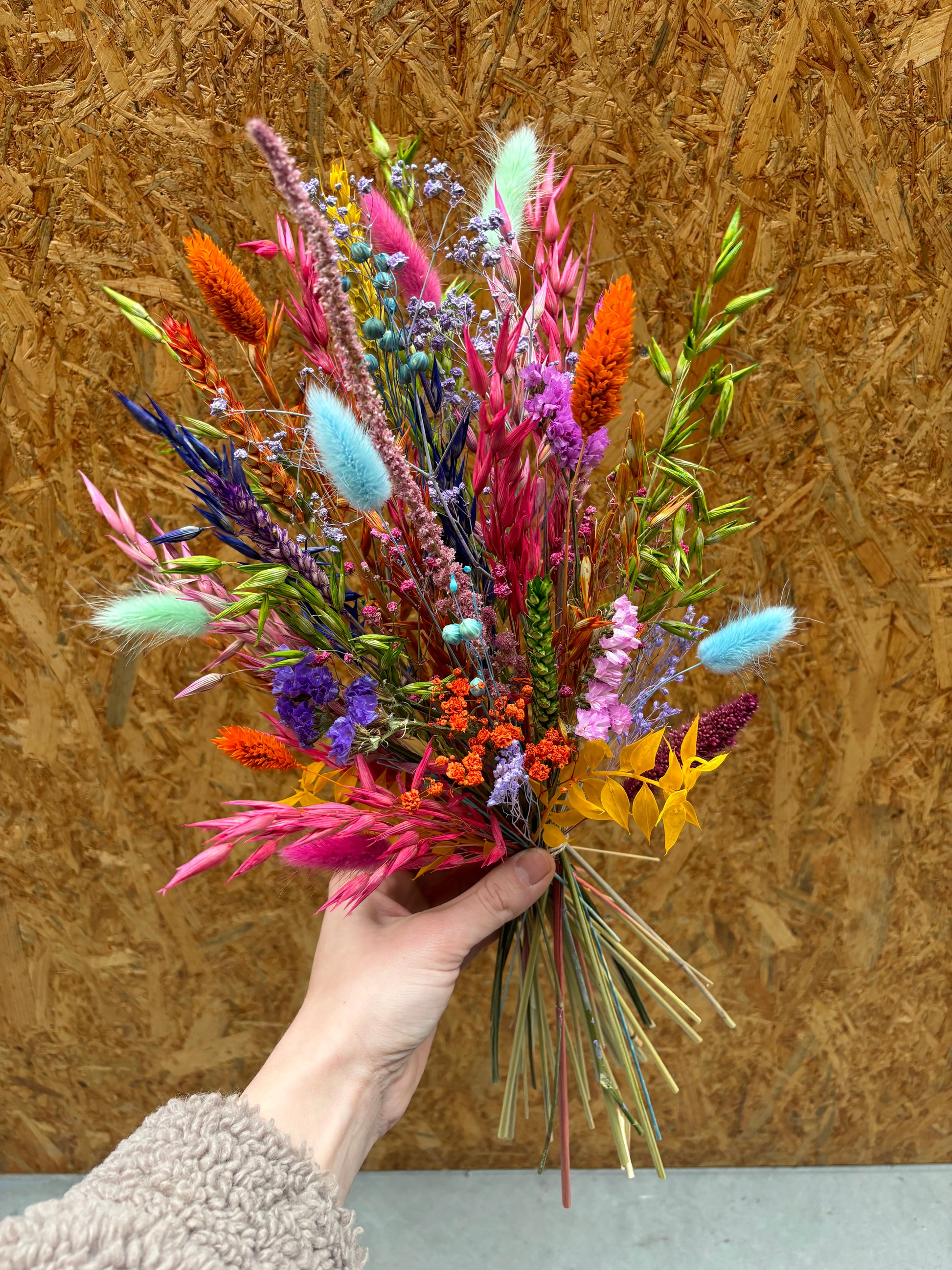 Het kan voorkomen dat een bepaald soort droogbloem niet meer voorradig is. Deze vervangen we dan voor een soortgelijke bloem, waardoor de uitstraling hetzelfde blijft.