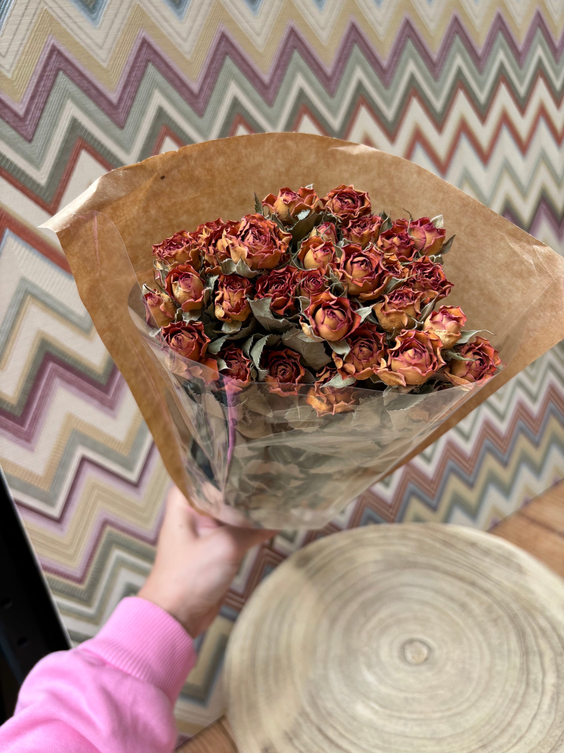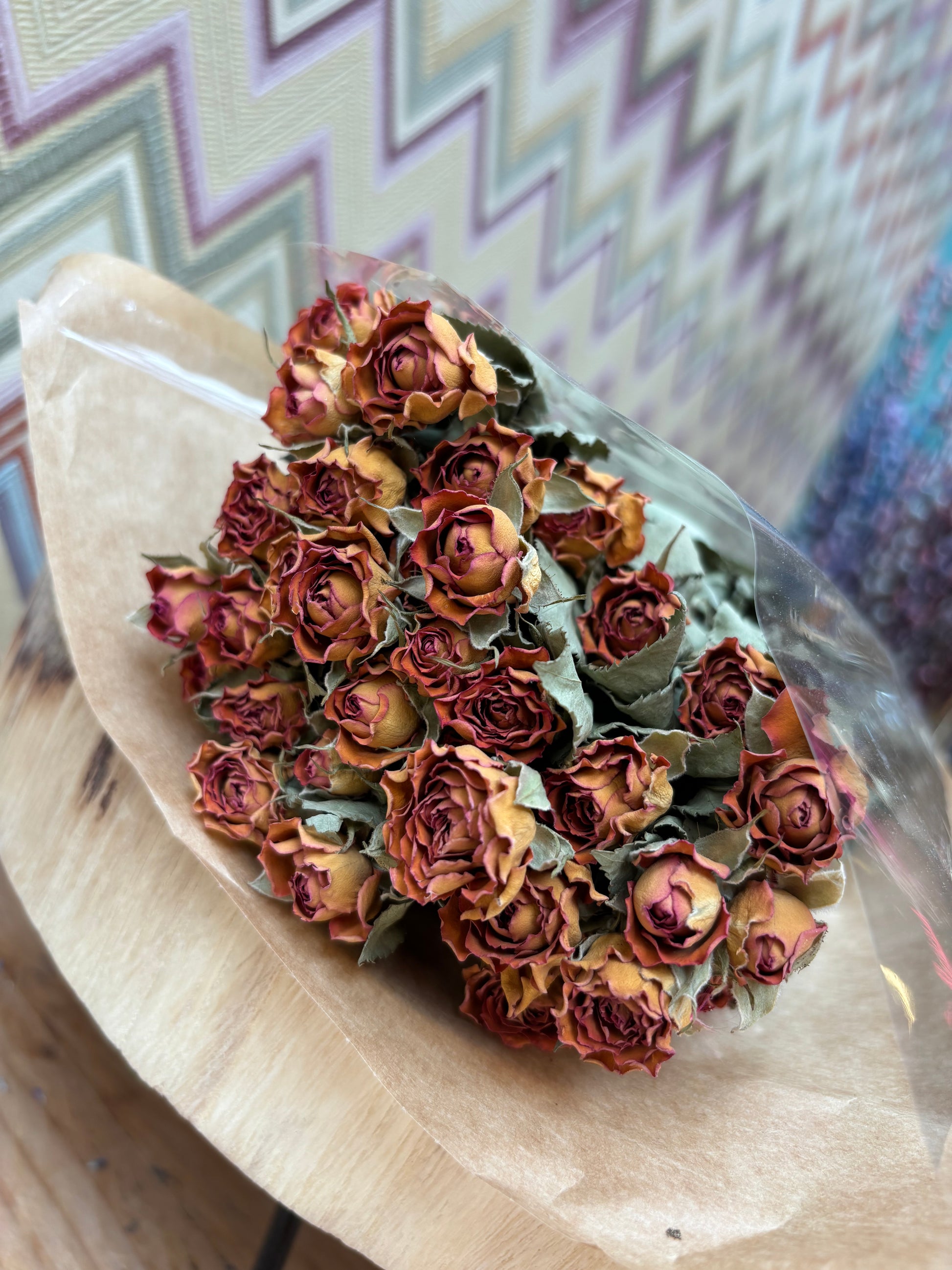Prachtige gedroogde rozen. Verkoop per bundel. Lengte circa 44 cm.