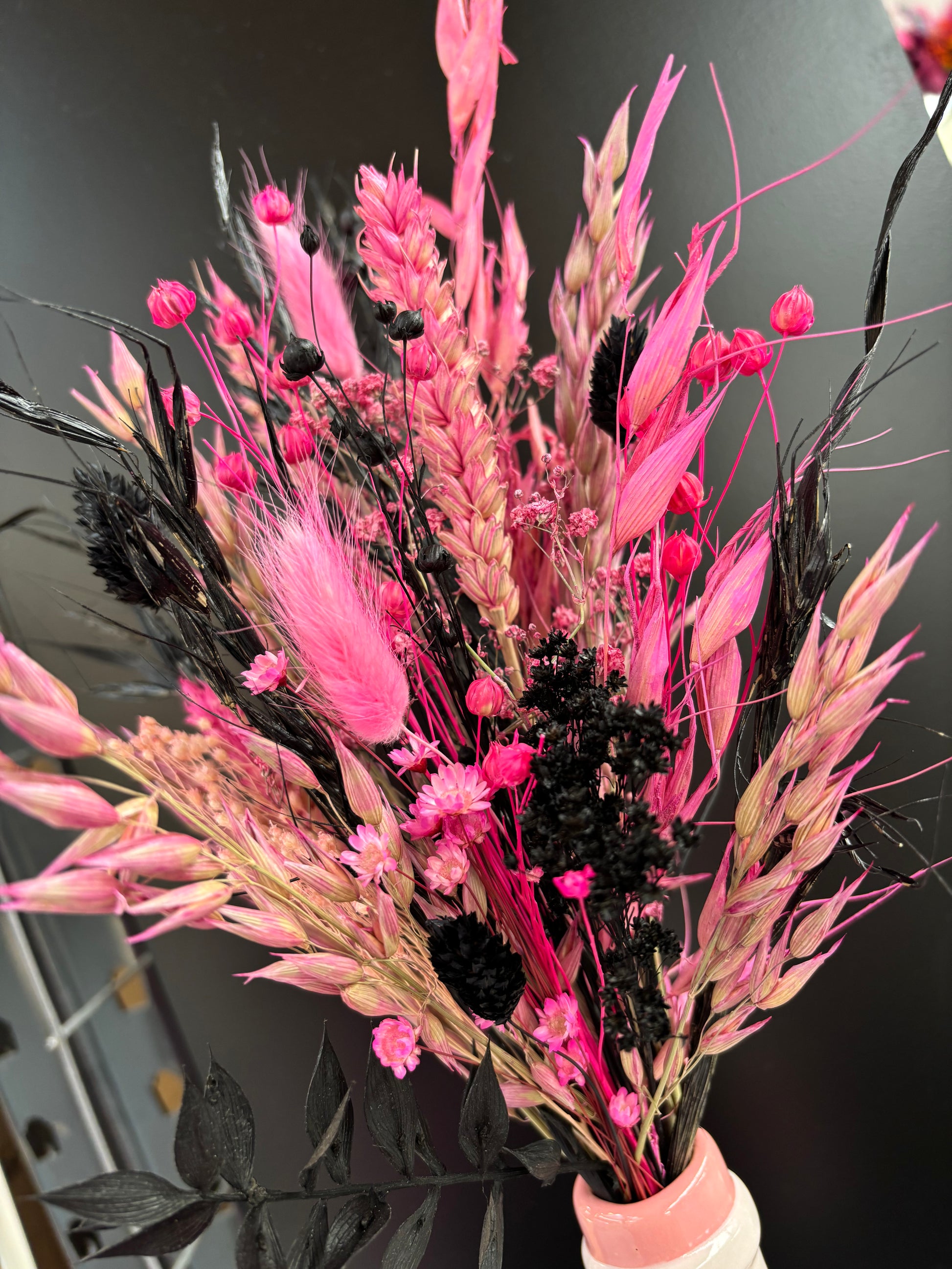 Het kan voorkomen dat een bepaald soort droogbloem niet meer voorradig is. Deze vervangen we dan voor een soortgelijke bloem, waardoor de uitstraling hetzelfde blijft.