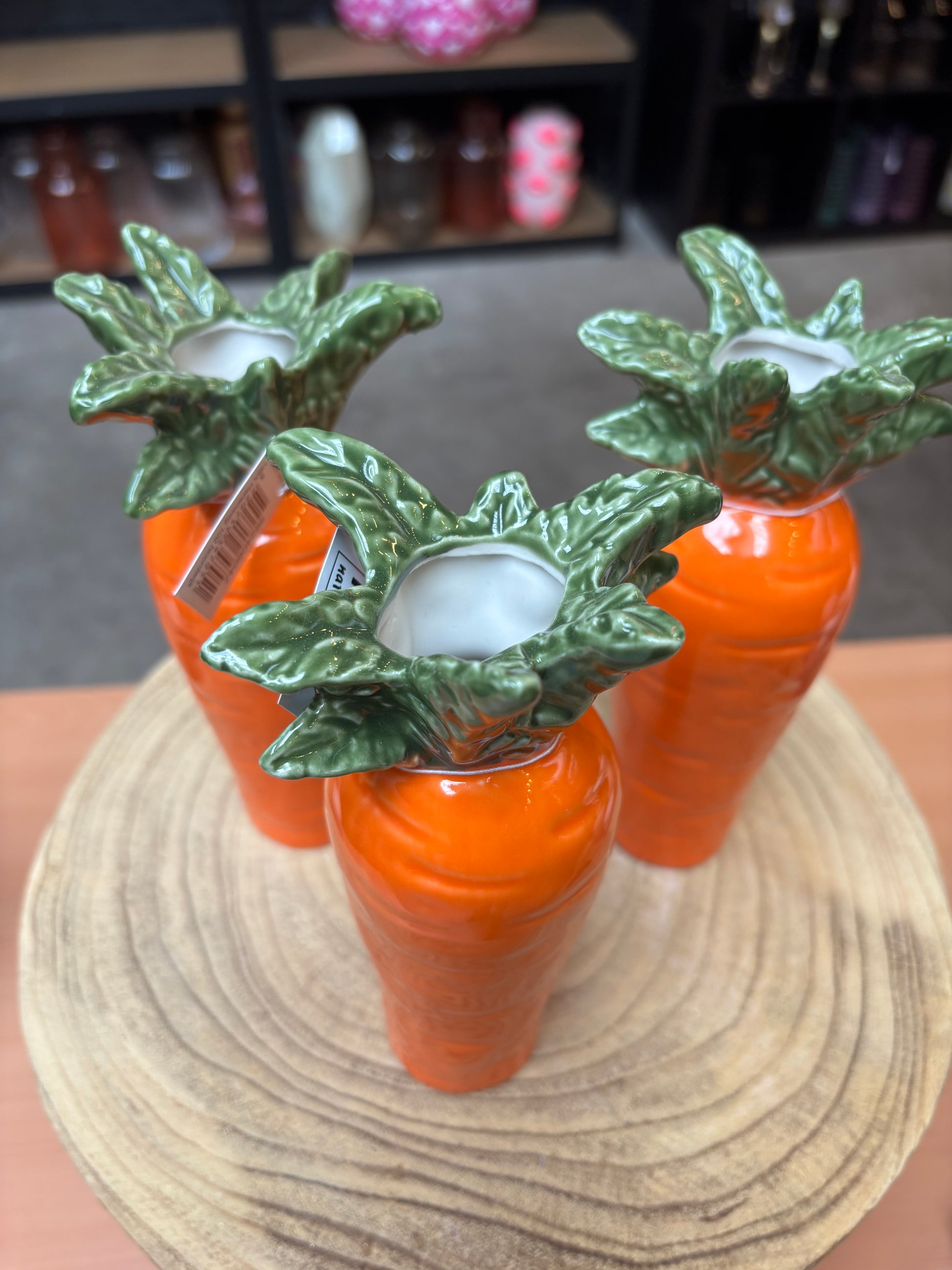 Vaasje in de vorm van een wortel.
