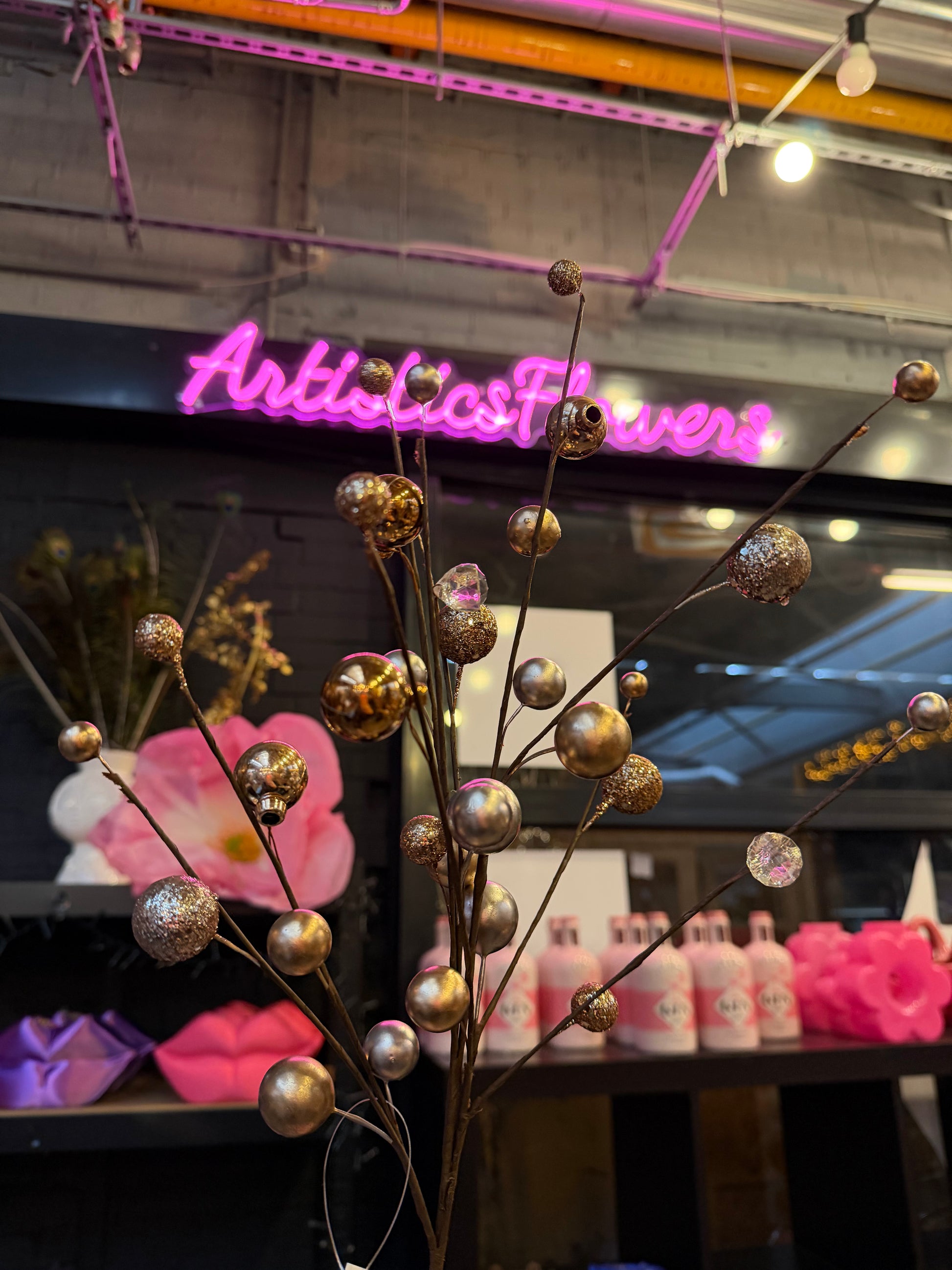 Breng direct kerstmagie in huis met deze betoverende decoratieve tak vol kleine kerstballetjes.