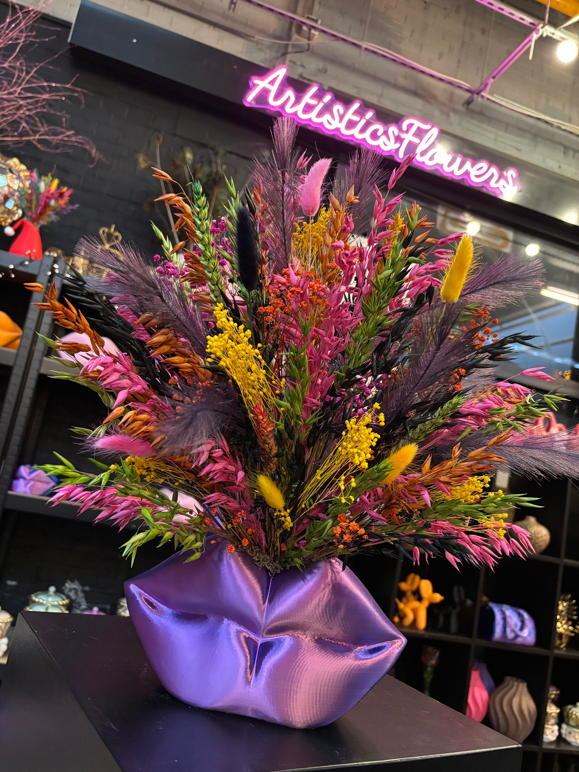 Geïnspireerd door een iconische lipvorm die eerder al razend populair bleek in combinatie met onze droogbloemen, hebben wij dit ontwerp naar een hoger niveau getild.