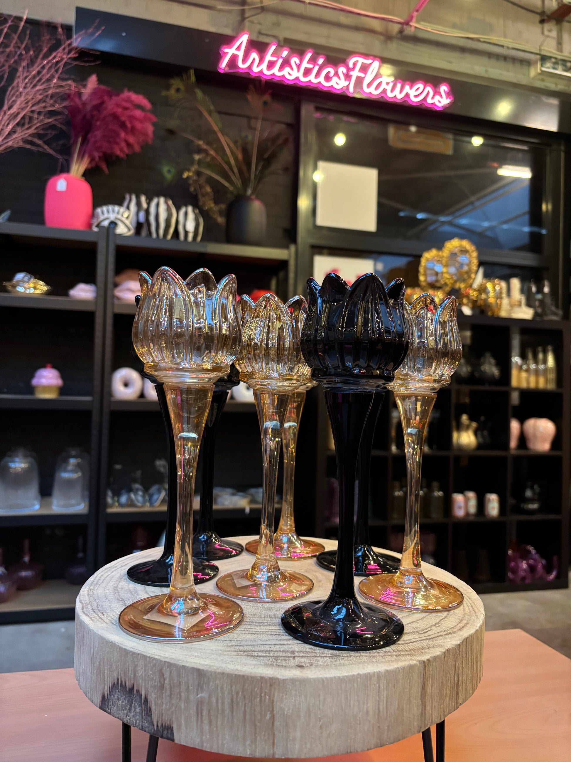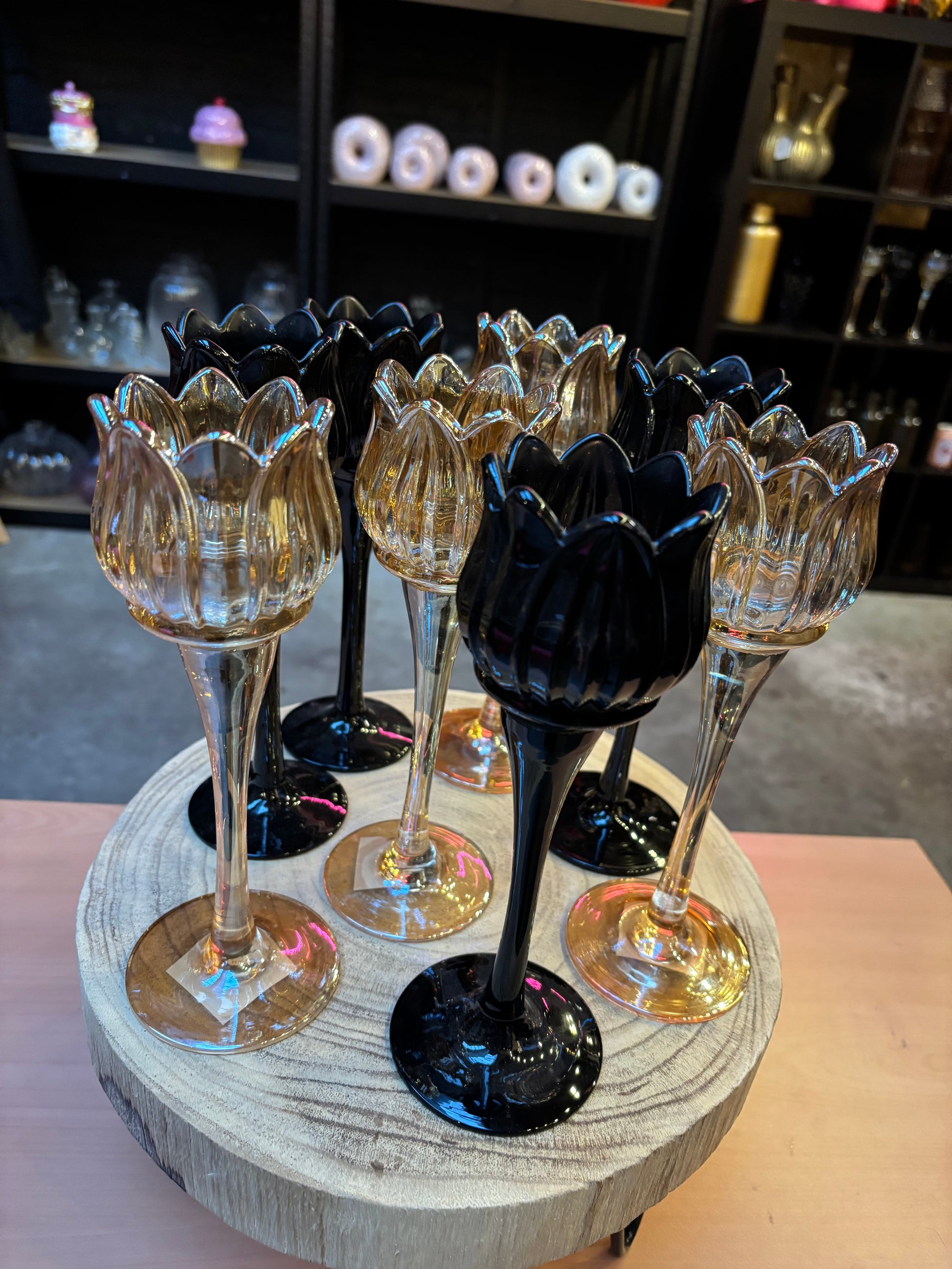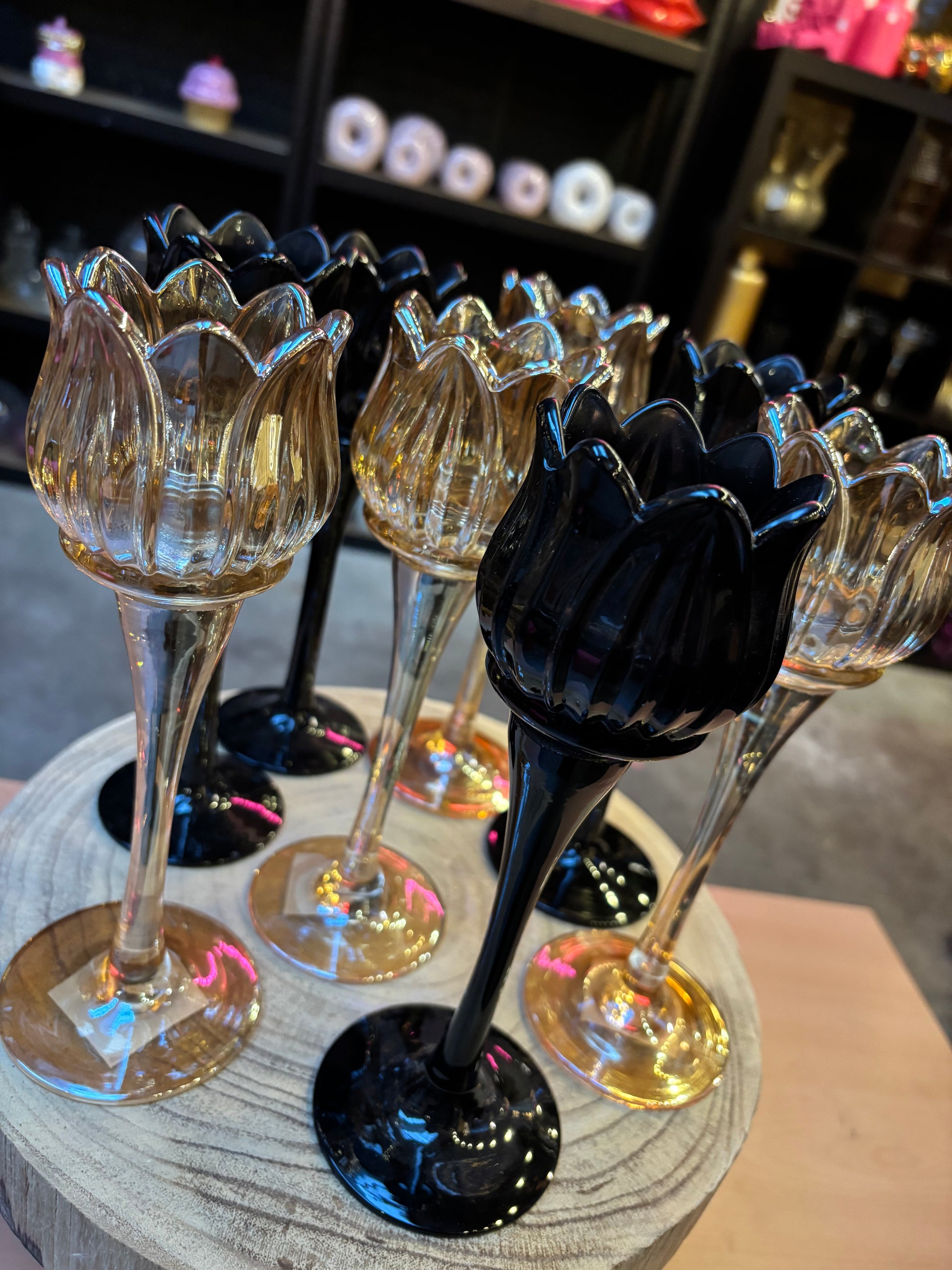 Geef je interieur wat gezelligheid met deze prachtige tulpen kandelaar. Beschikbaar in het zwart of taupe.
