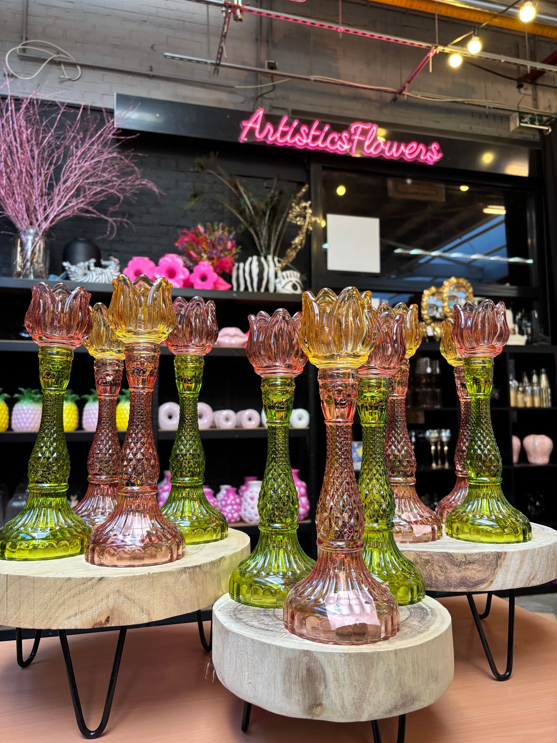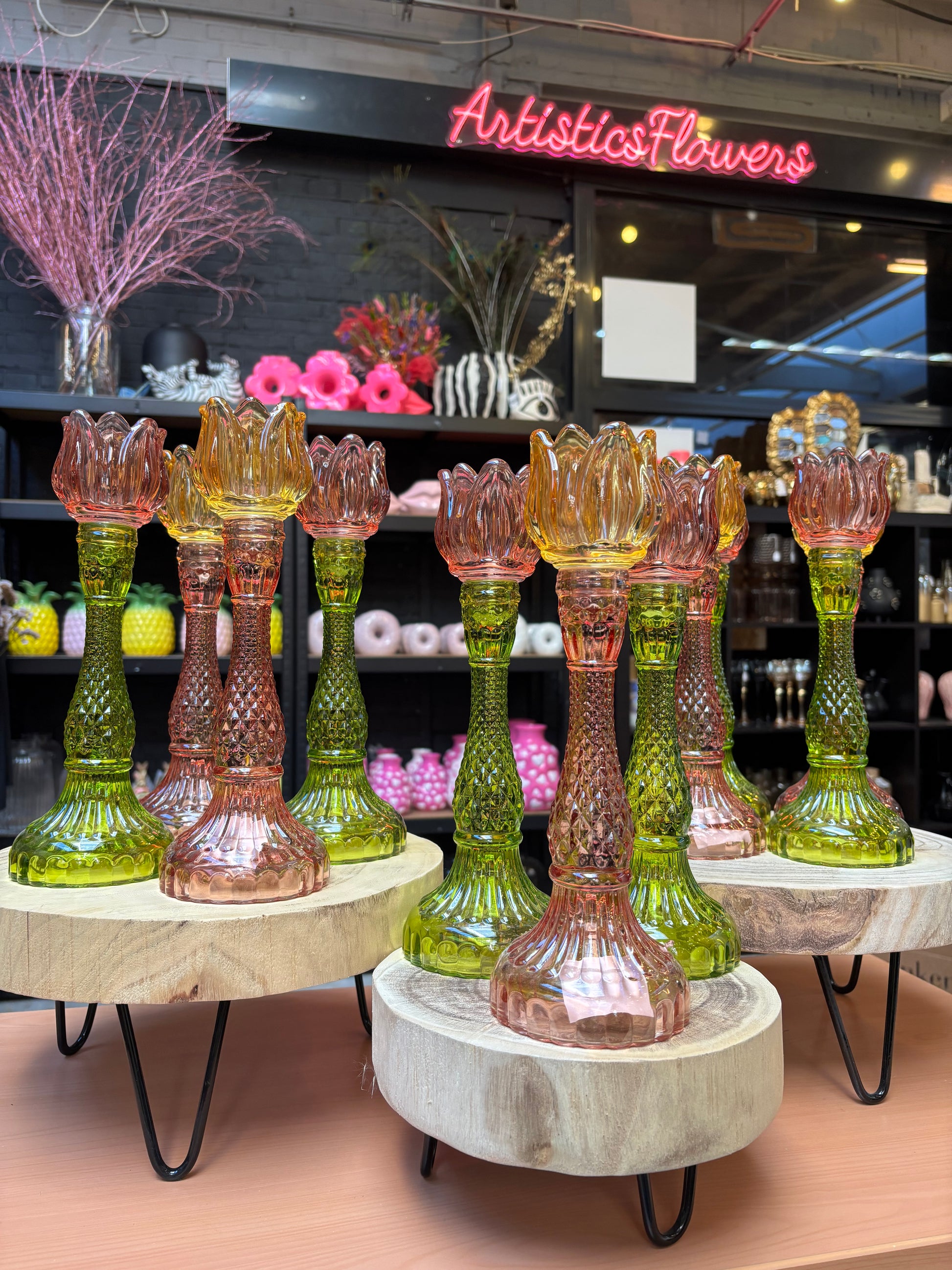 Vrolijke tulpenkandelaar in 2 verschillende kleuren.