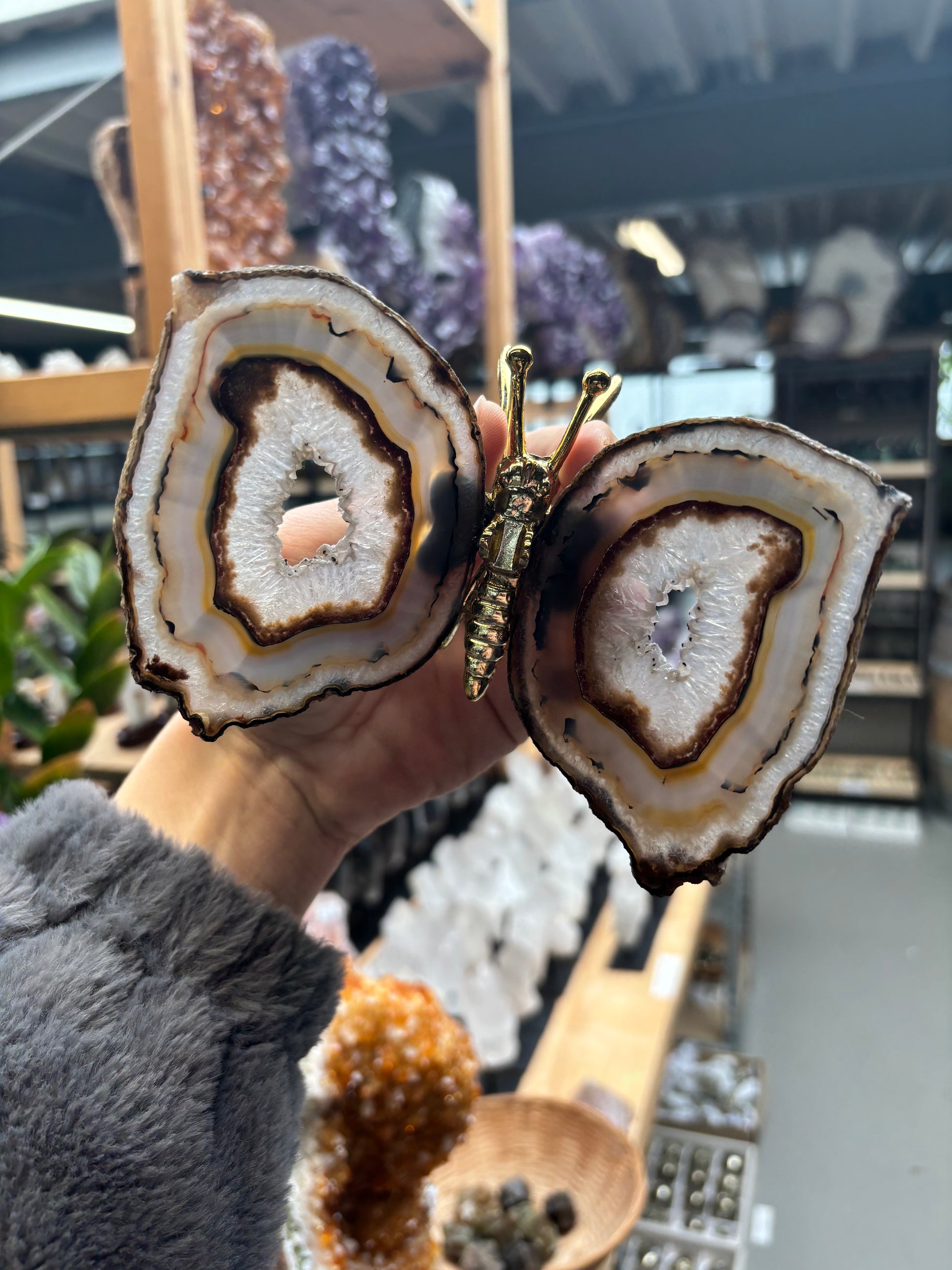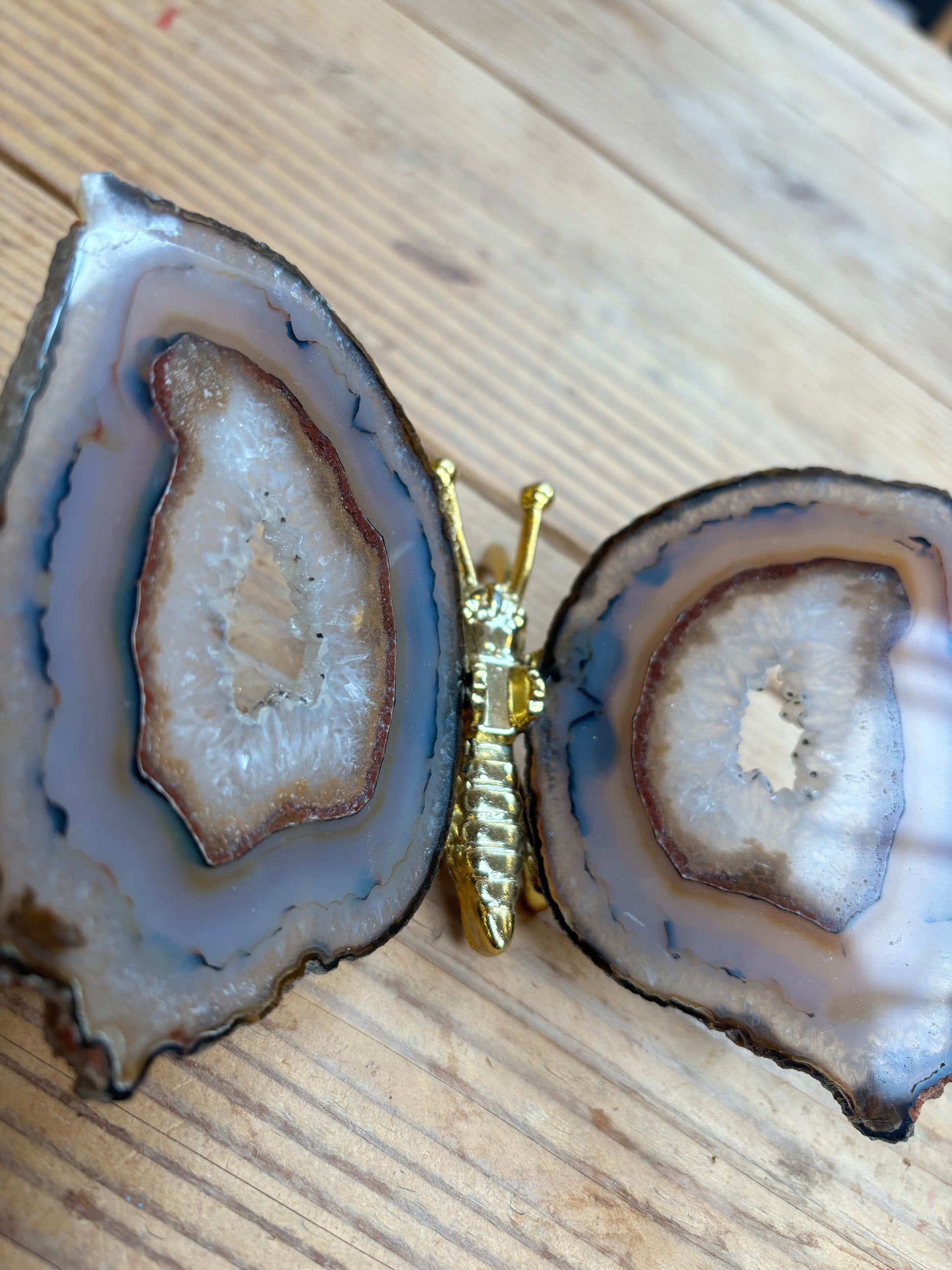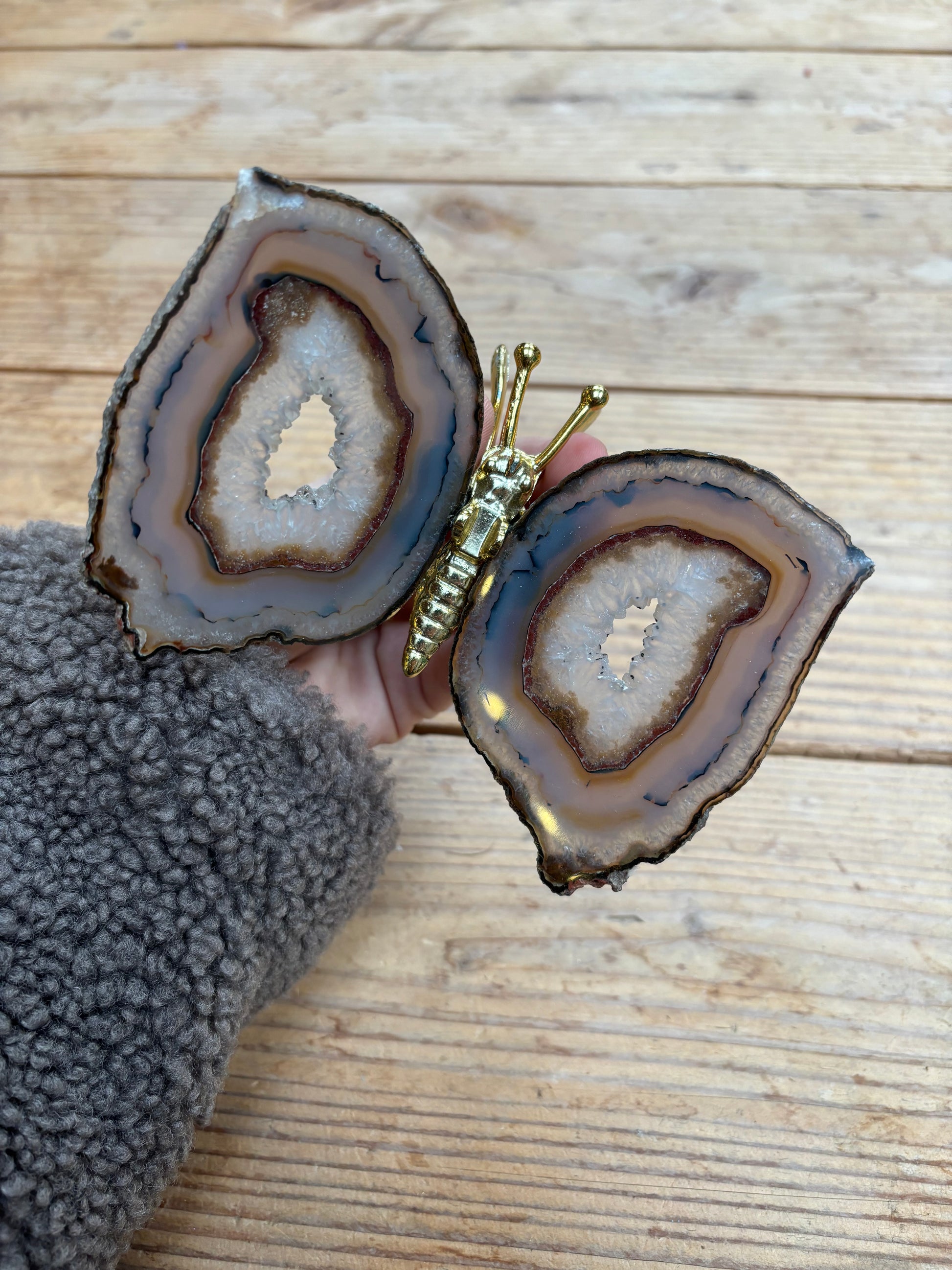 Prachtige vlinder met vleugels van agaat en een goud lijfje. De vlinders variëren tussen de 13/16 cm breed en 12/15 cm lang.
