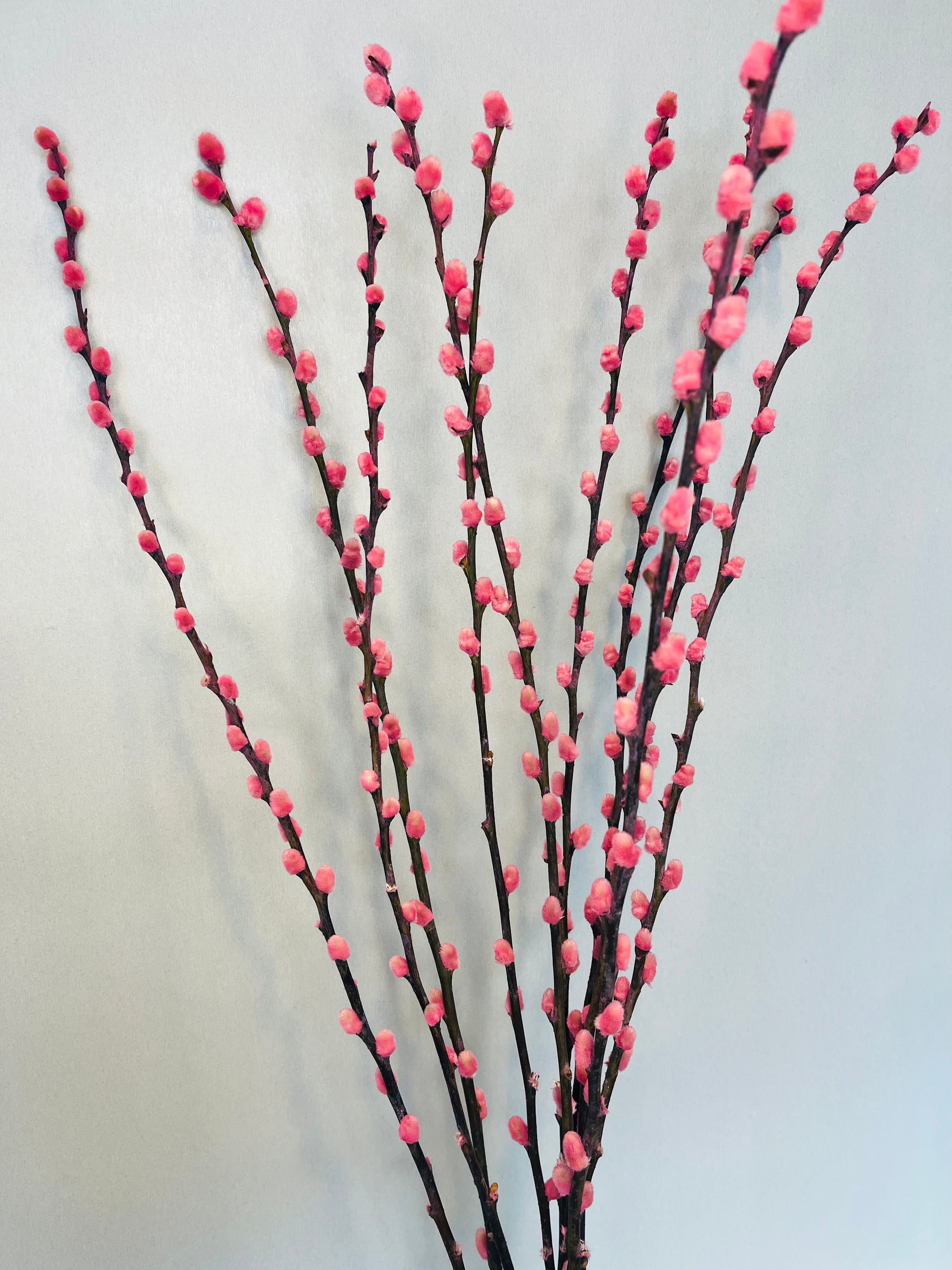 Wilgenkatjes zijn leuke voorjaarstakken van Hollandse kwekers afkomstig van de Wilg boom. De takken zijn als verse takken en droogbloemen te gebruiken en je herkent ze aan de zachte, roze dotjes die vast zitten aan de knoppen van de takken. Meng de roze wilgenkatjes met verse tulpen voor een mooi opgemaakt boeket of meng ze met andere lange droogbloemen van ongeveer 90 centimeter. Ook jouw roze wilgenkatjes maar natuurlijk ook andere kleuren koop je bij Artisticsflowers.